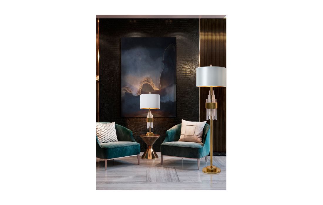 Candeeiro de pé em tons de dourado, torna este candeeiro moderno e elegante, o seu abat-jour escuro torna a peça mais discreta, podendo assim ser adaptado a diversos espaços e decorações.Dimensões em cmD 45 A 165 Prazo de Entrega10 a 15 dias