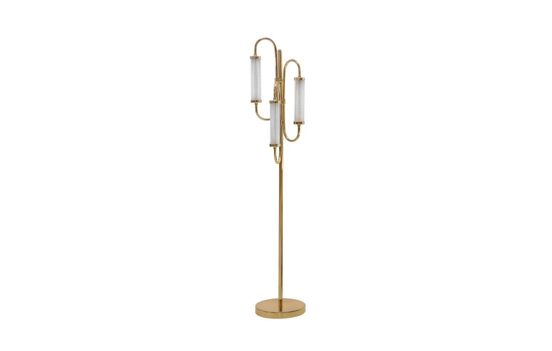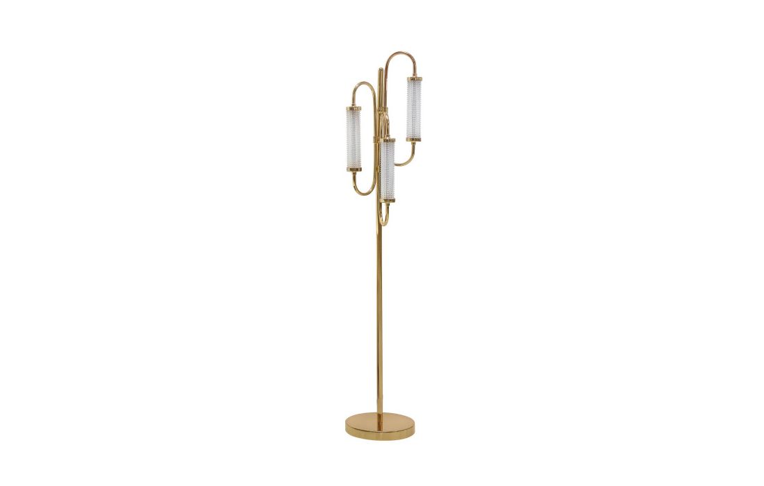 Candeeiro de pé em tons de dourado, torna este candeeiro moderno e elegante, o seu abat-jour escuro torna a peça mais discreta, podendo assim ser adaptado a diversos espaços e decorações.Dimensões em cmD 45 A 165 Prazo de Entrega10 a 15 dias