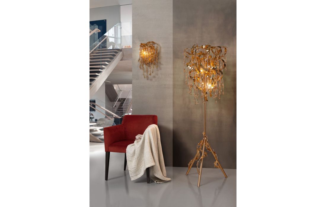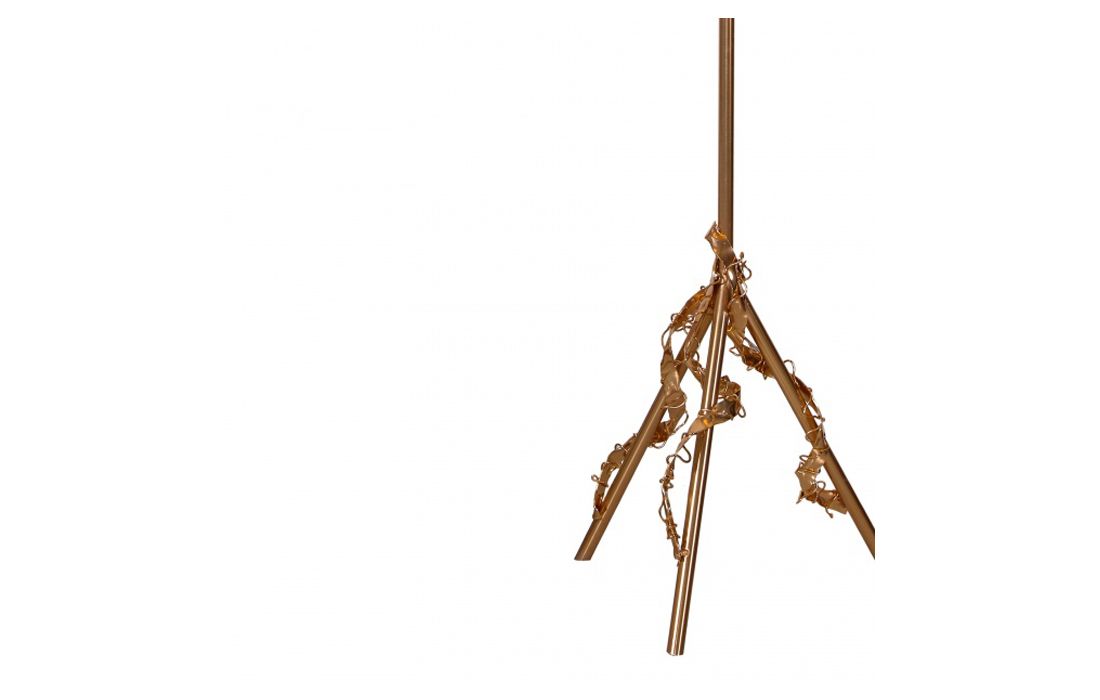 Candeeiro de pé em tons de dourado, torna este candeeiro moderno e elegante, o seu abat-jour escuro torna a peça mais discreta, podendo assim ser adaptado a diversos espaços e decorações.Dimensões em cmD 45 A 165 Prazo de Entrega10 a 15 dias