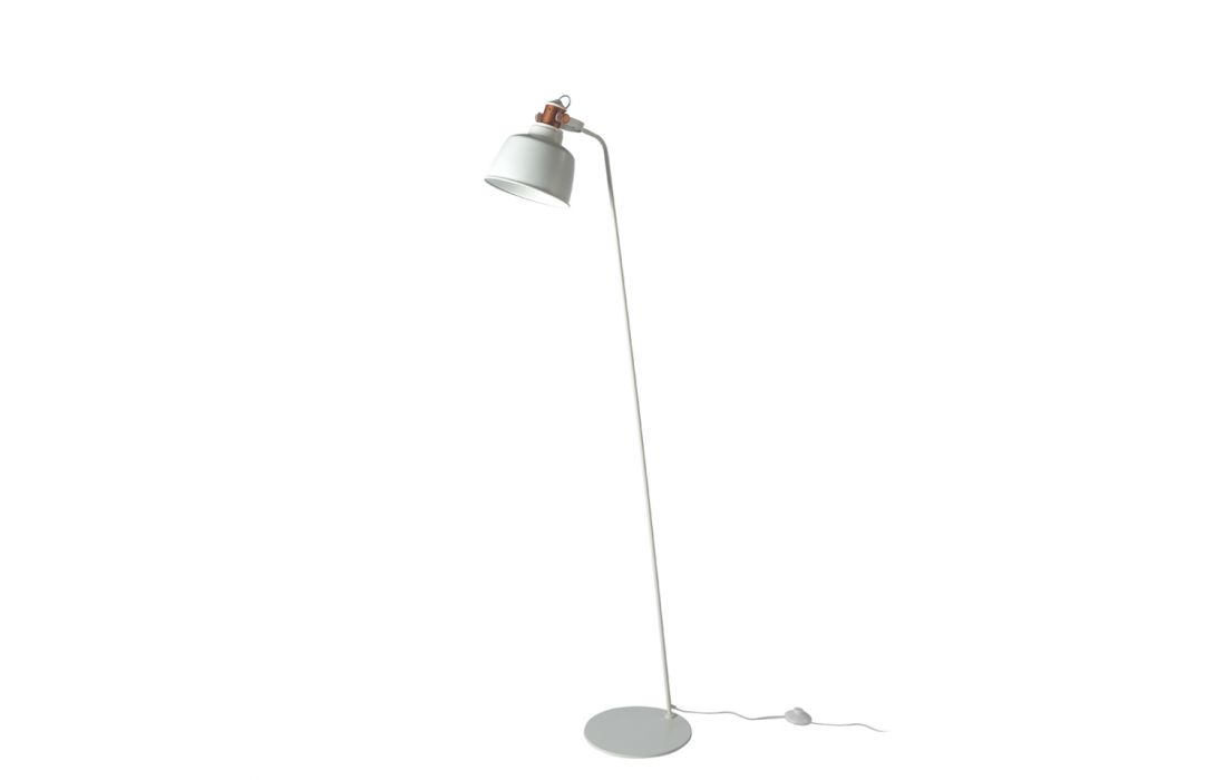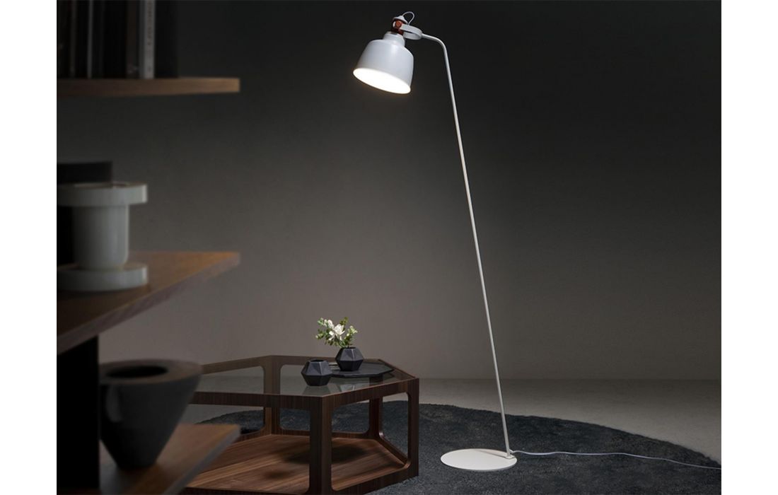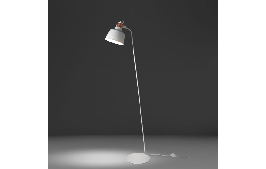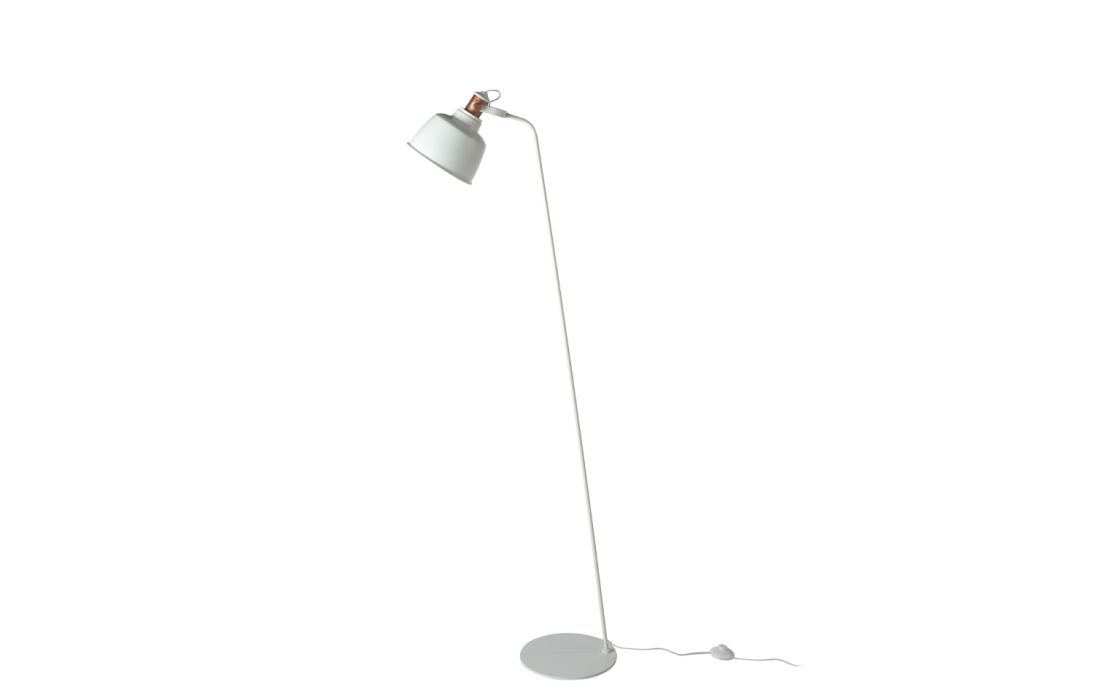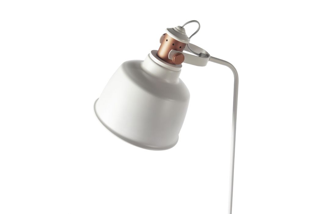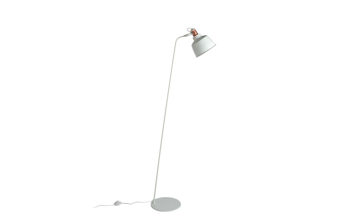 Candeeiro de pé em aço inoxidável pintado de branco e abajur multidirecional com detalhes na cor bronze.Destinatário :