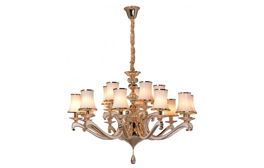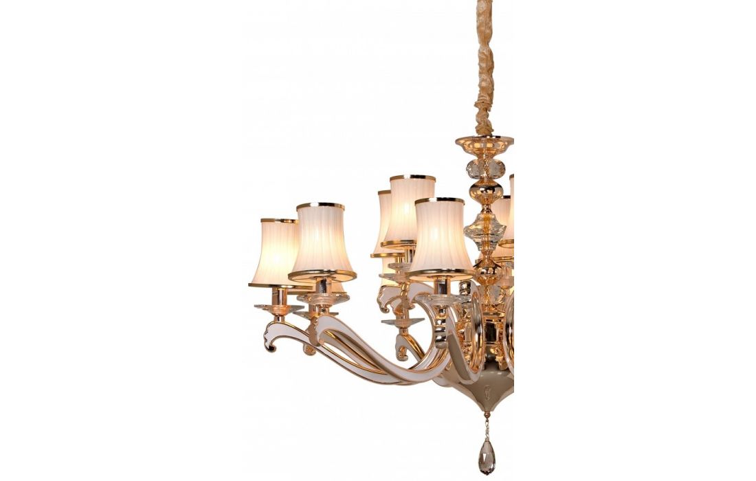 Candeeiro de teto em tons claros e brilhantes de ouro.