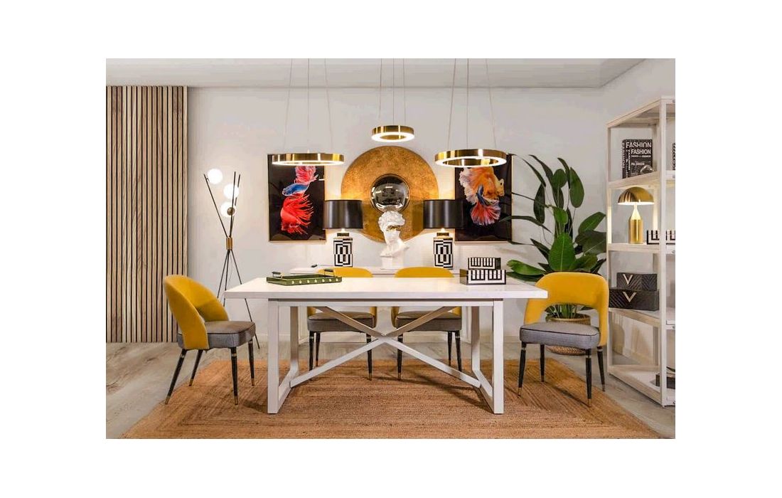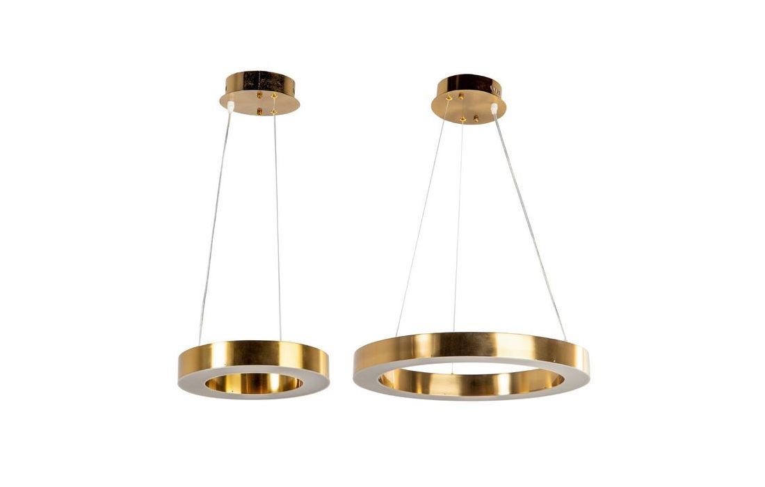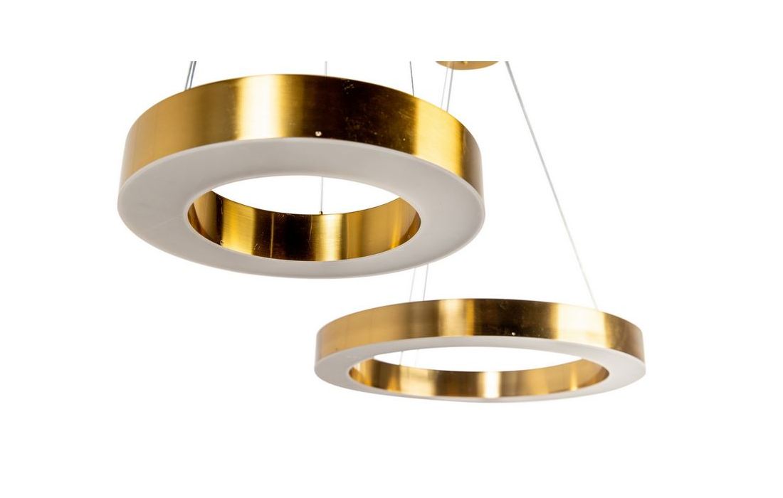 Candeeiro de teto feito em metal dourado e acrilico branco com led integrado