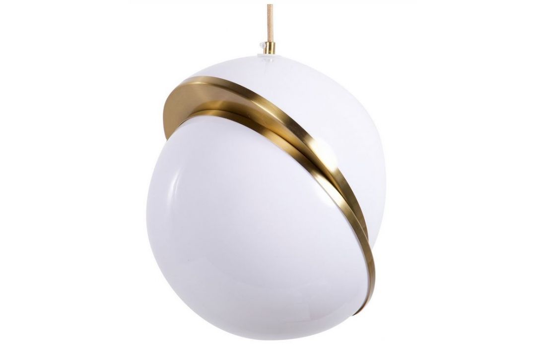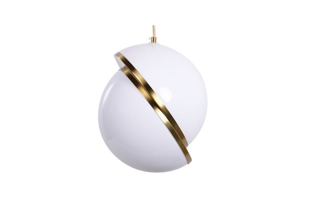 Candeeiro de teto feito em metal dourado e acrilico branco