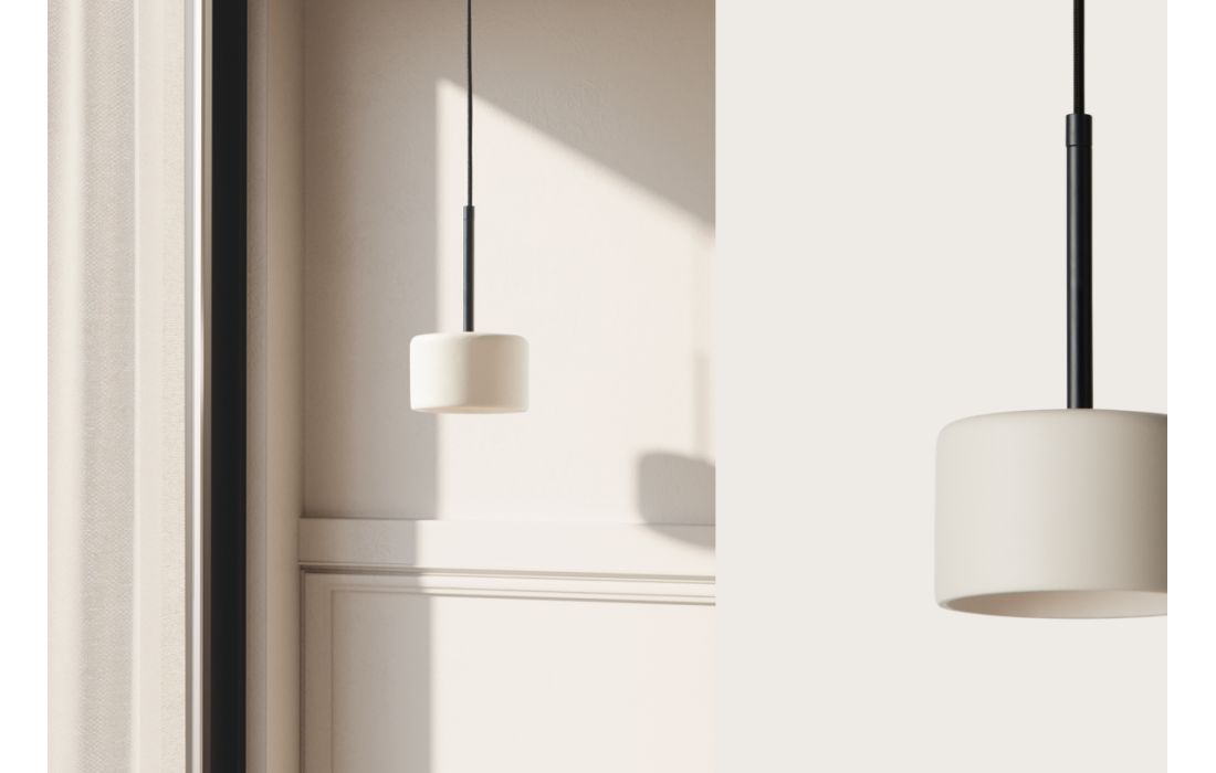 Candeeiro de teto suspenso feito em metal disponivel nas cores ouro, branco ou preto , com abajur em cerâmica.