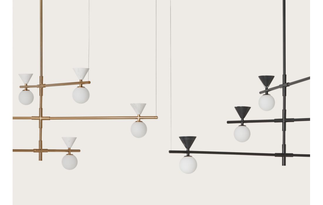 Candeeiro em metal preto mate ou dourado , com tulipa em mármore branco ou preto , bola em vidro canelado branco .