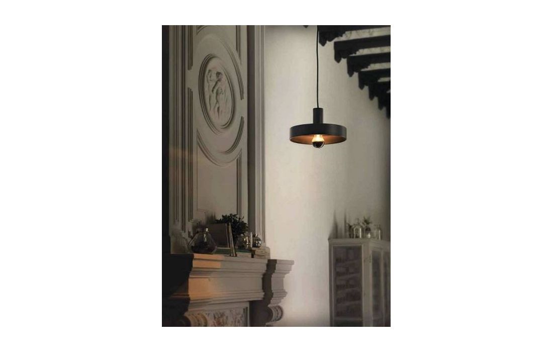 Estrutura em aço preto mate com difusor interior do abajur em dourado.