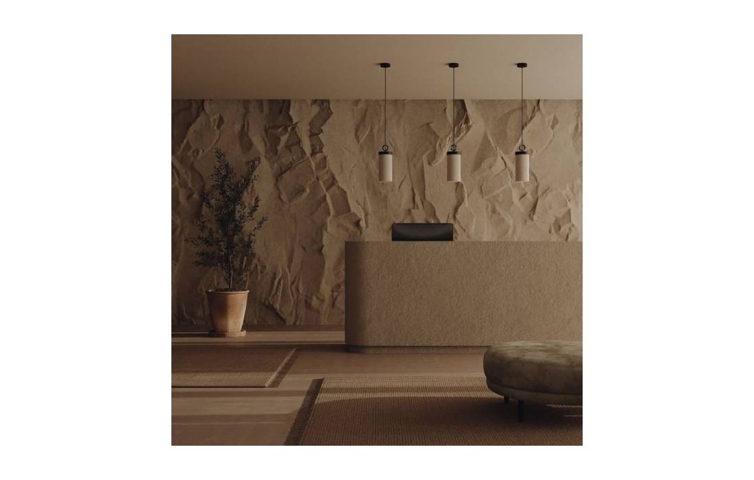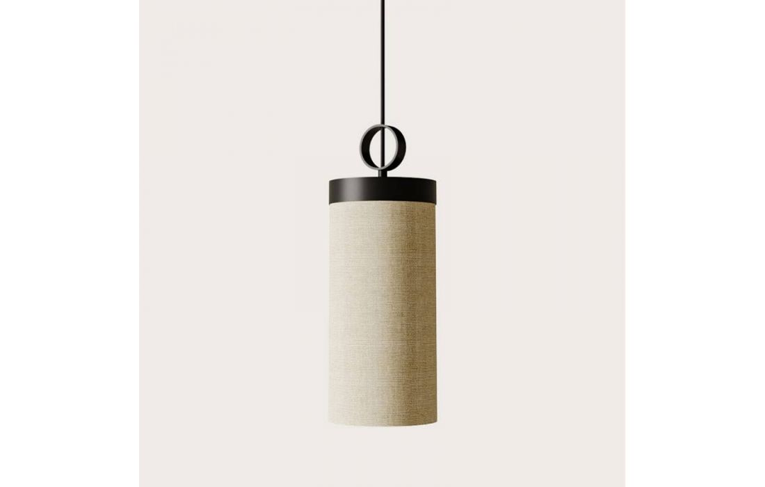 Candeeiro suspenso que cria ambientes muito quentes graças ao seu abajur em tecido. Um design de inspiração oriental que embeleza os espaços. Com estrutura em aço pintada de preto mate e abajour em tecido de linho creme.