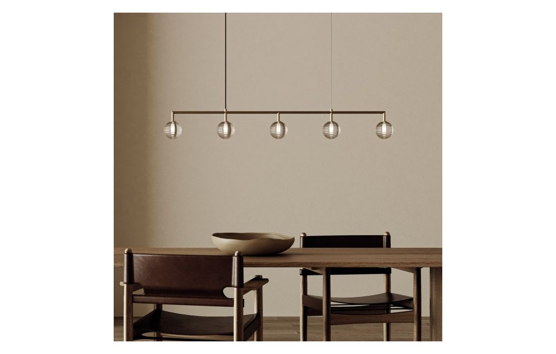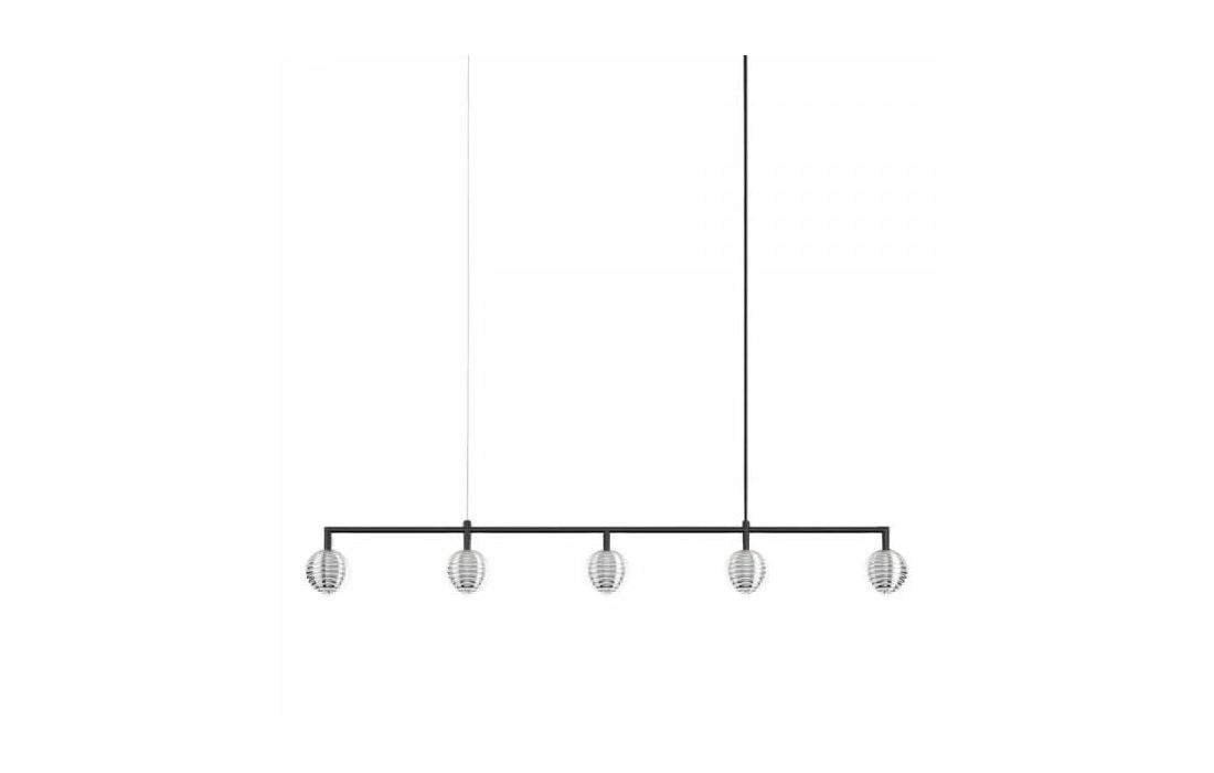 Candeeiro suspenso com um design minimalista, muito elegante e pensado para dar um toque especial a qualquer canto da casa.Com base e detalhe em ouro mate ou aço preto mate e abajur esférico de vidro listrado é elaborado com requinte, criando um efeito que iluminará seu espaço de forma aconchegante.
