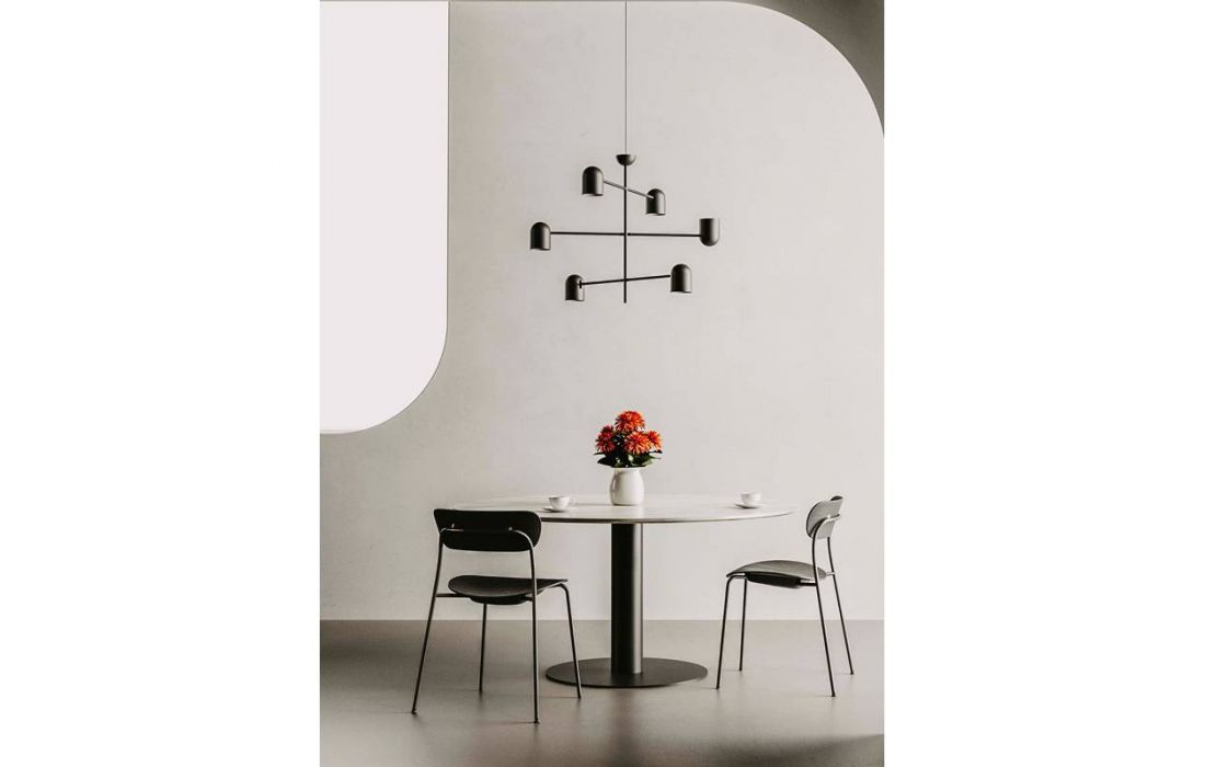 Candeeiro suspenso de linhas suaves, com um conceito de luz funcional e versátil, que procura a simplicidade sem perder a elegância.Cada tulipa é rematada com um detalhe interior em alumínio branco mate que confere um ar minimalista à luminária.