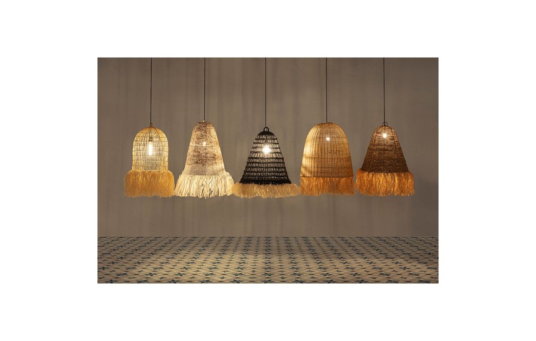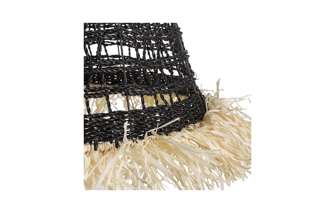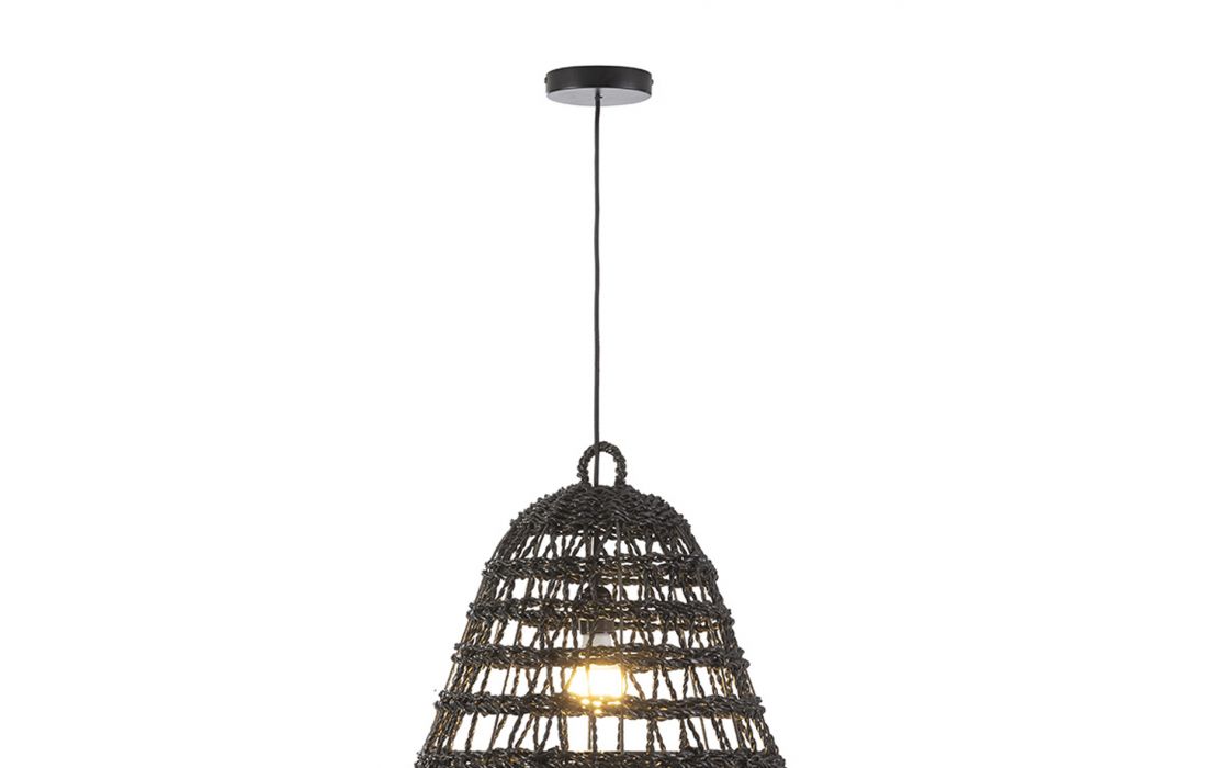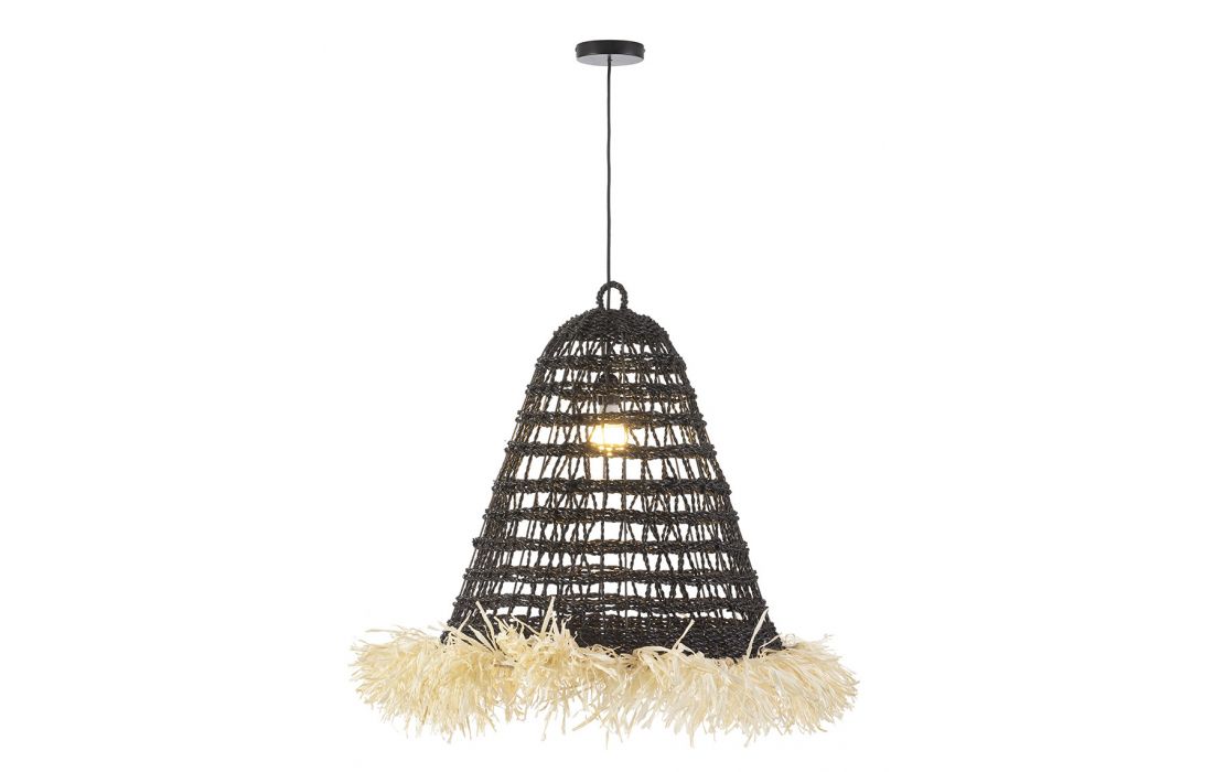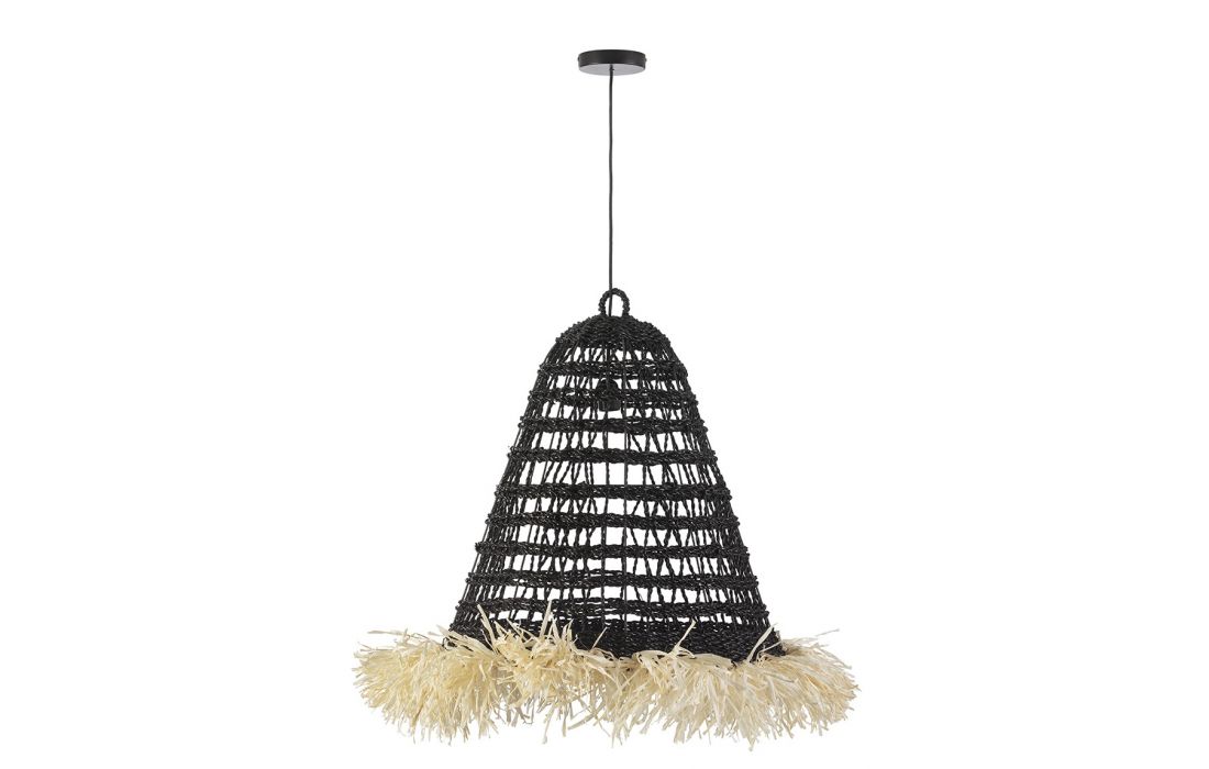 Candeeiro de teto feito em sisal e sintético cor preto/bege