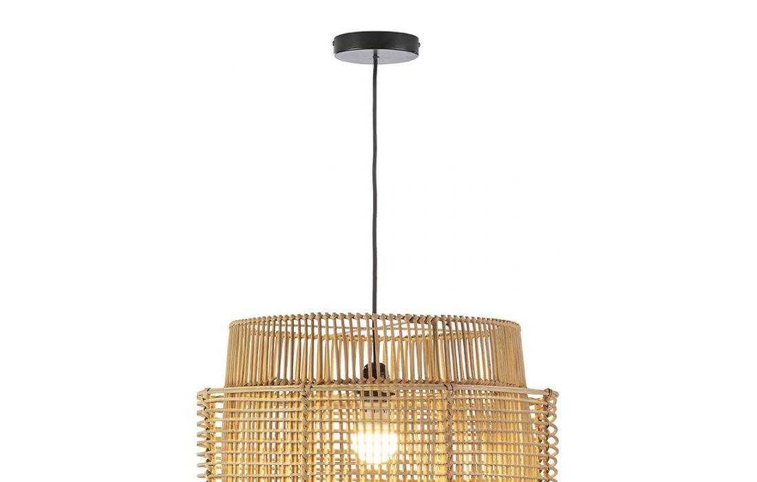 Candeeiro de teto feito em ratan cor natural