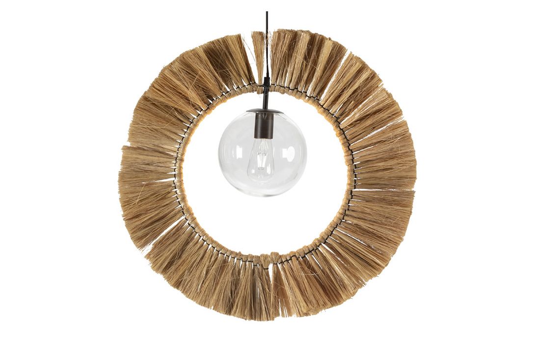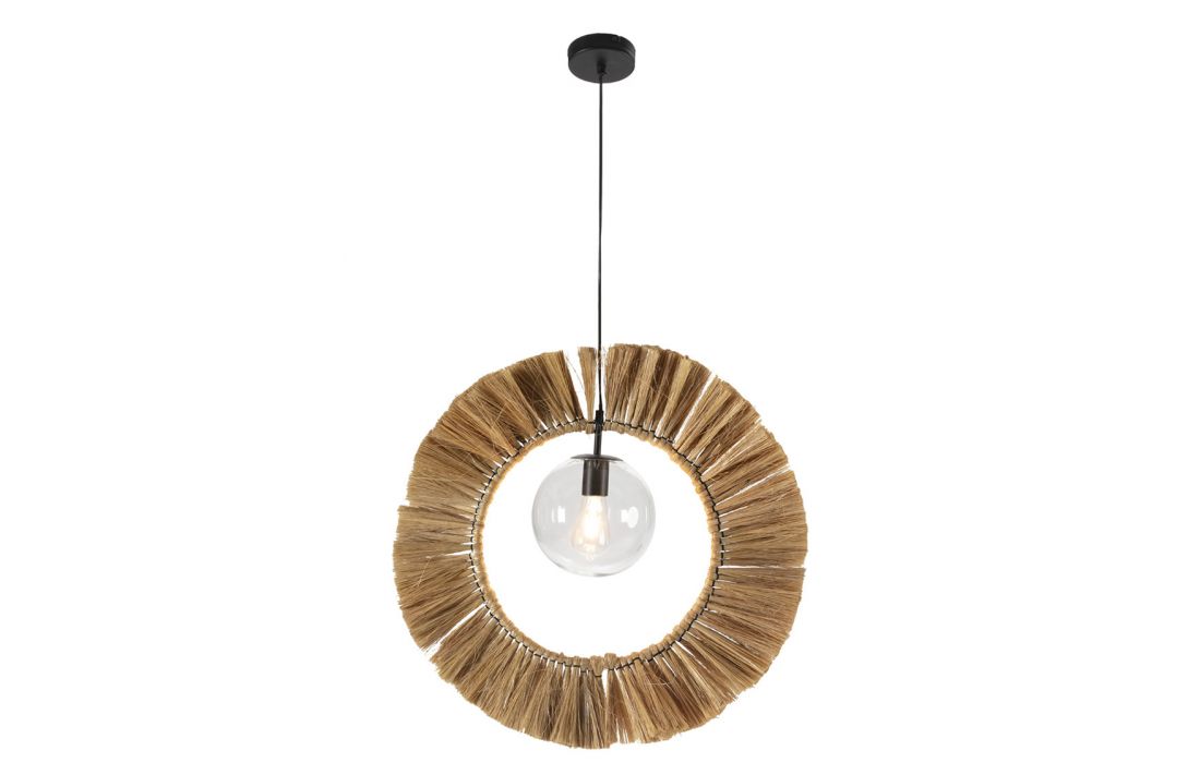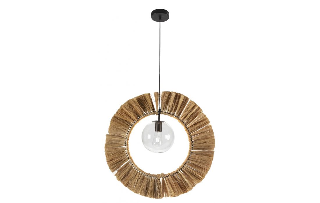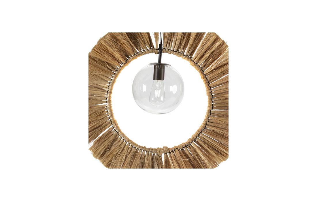 Candeeiro de teto feito em metal, grama do mar e vidro cor natural/preto fosco