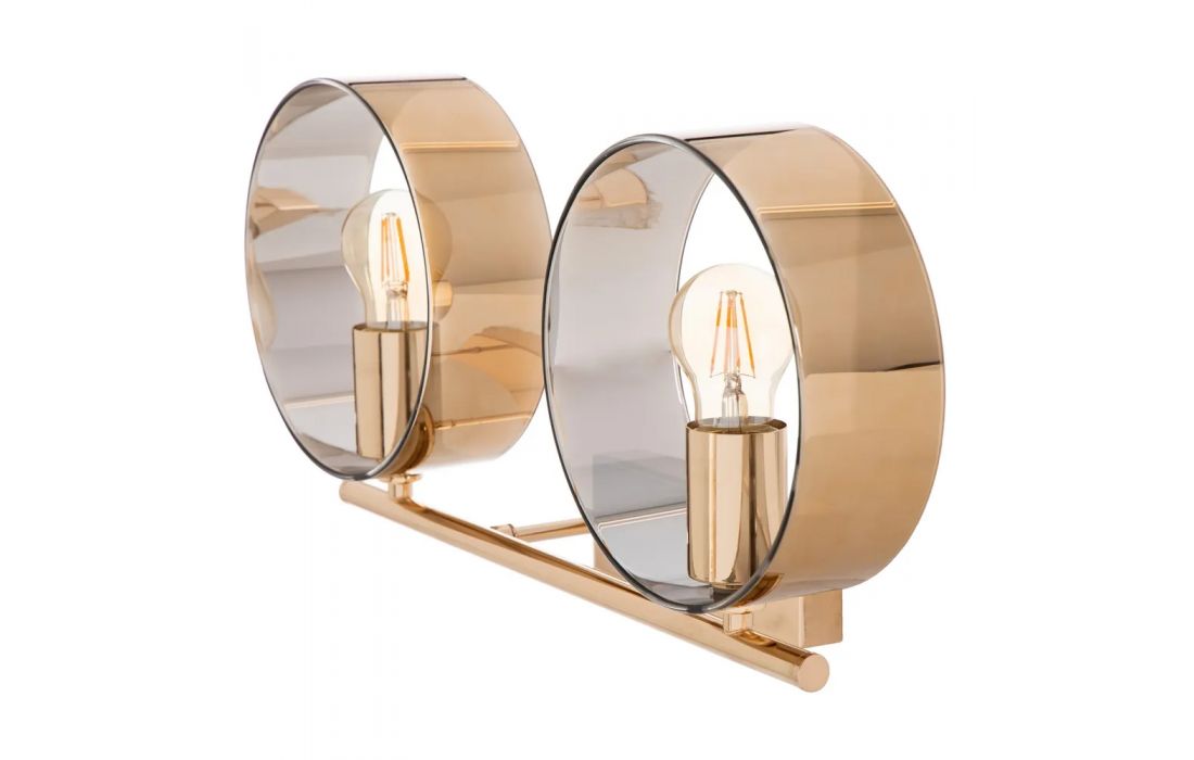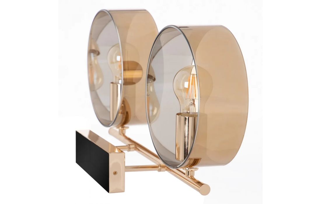 Candeeiro de parede de 1 luz em metal lacado, cor chocolate, dupla tulipa, interior de rede metálica e exterior de vidro.Dimensões em cmL 23,5 P 20 A 40 (35) max (75)Prazo de Entrega05 a 10 dias