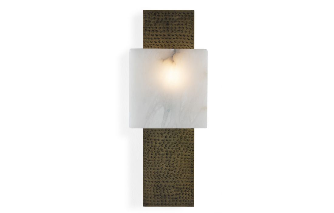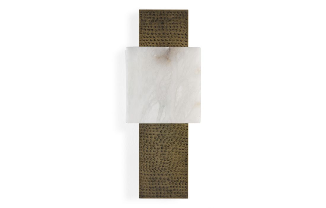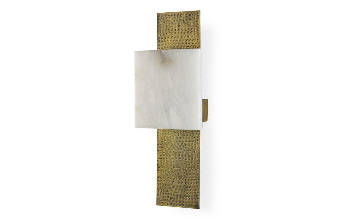 Candeeiro de parede feito em metal e alabastro cor branco/latão envelhecido
