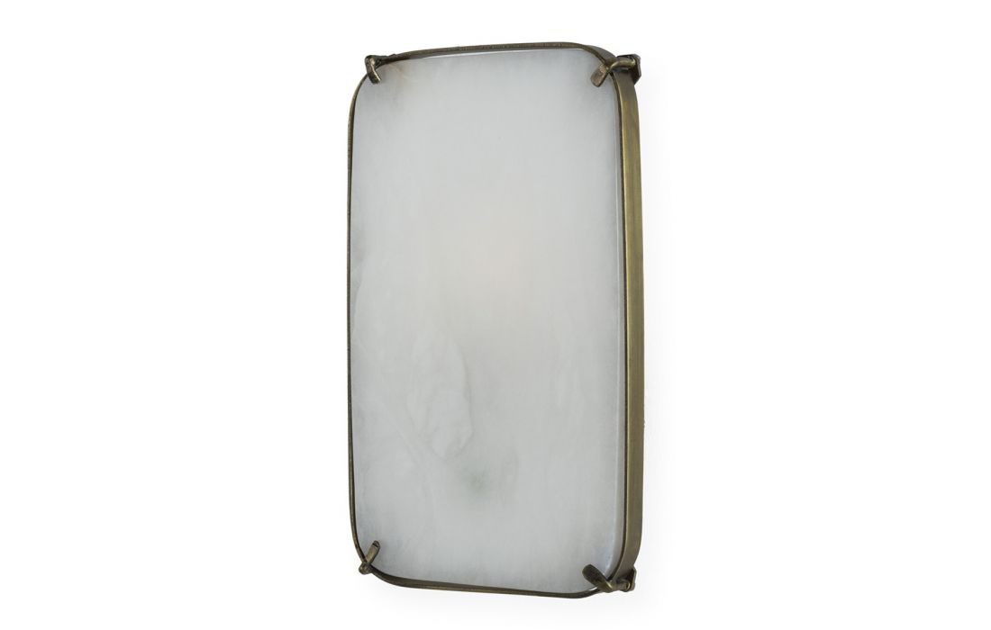 Candeeiro de parede feito em metal e alabastro cor latão envelhecido/branco