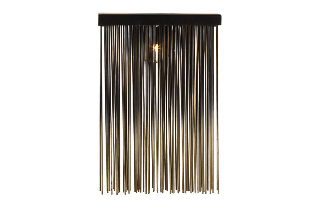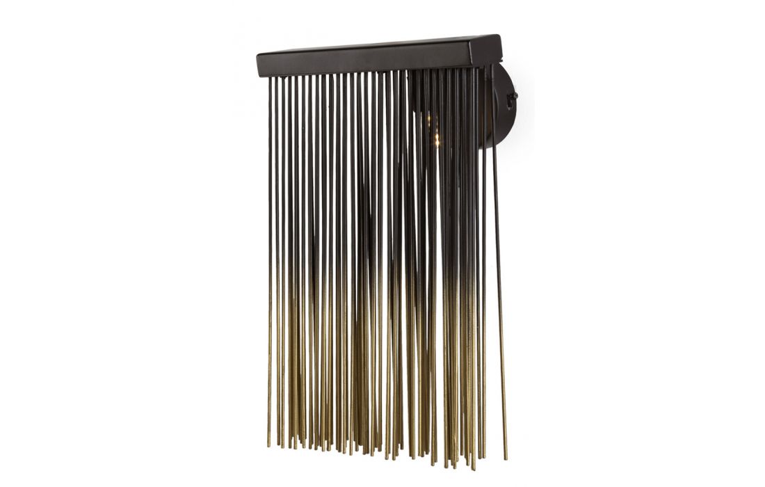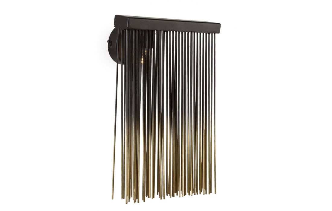 Candeeiro de parede feito em metal cor preto fosco/dourado