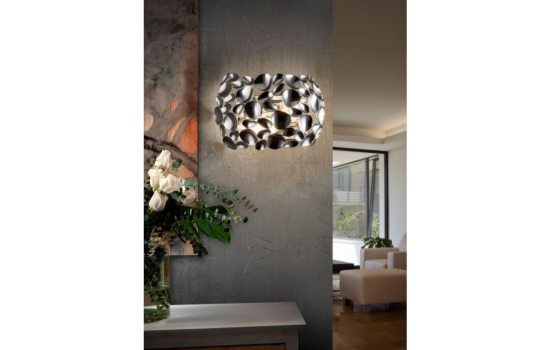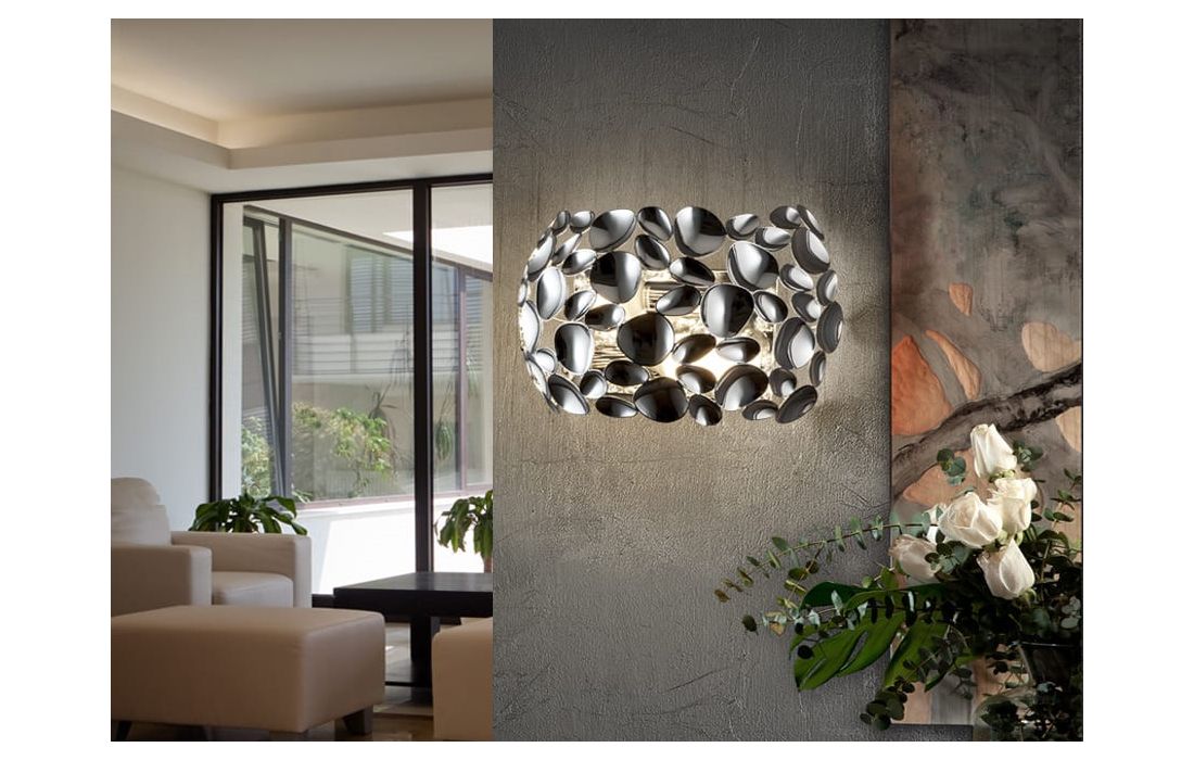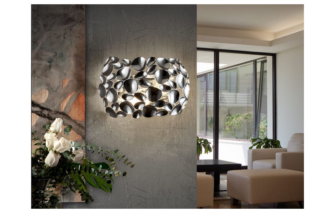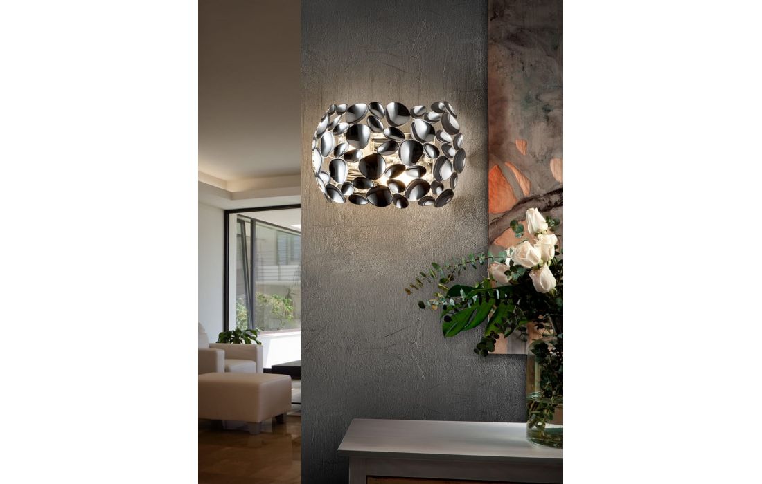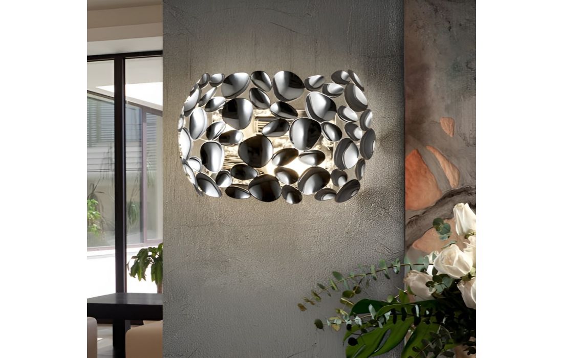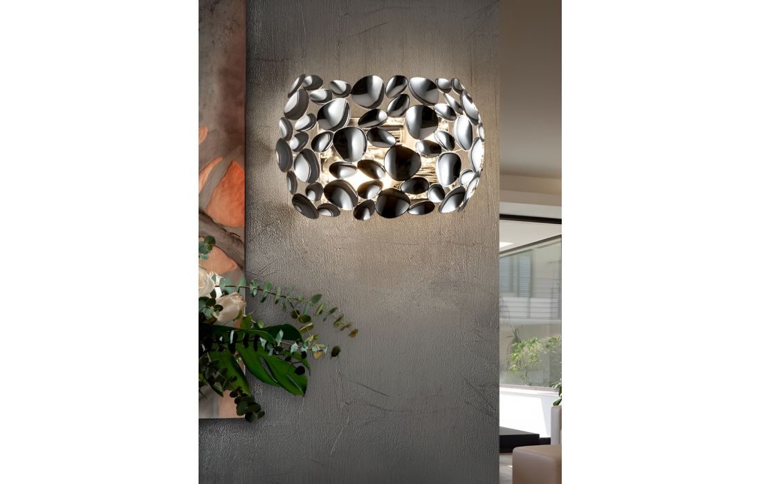 Candeeiro de parede de 2 luzes realizado em metal cromado. Com duas lâmpadas LED incluídas.