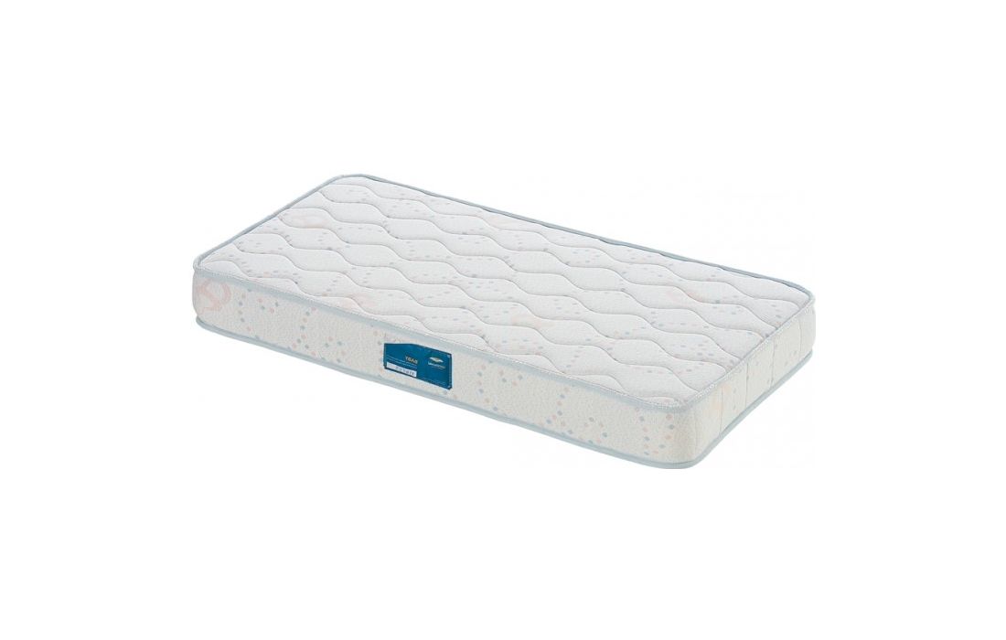 Colchão com sistema de molas e enchimento “Plus Confort”. Tecido ultra-suave antialérgico com tratamento health guard. Alto conforto e higiene para o seu bebé.