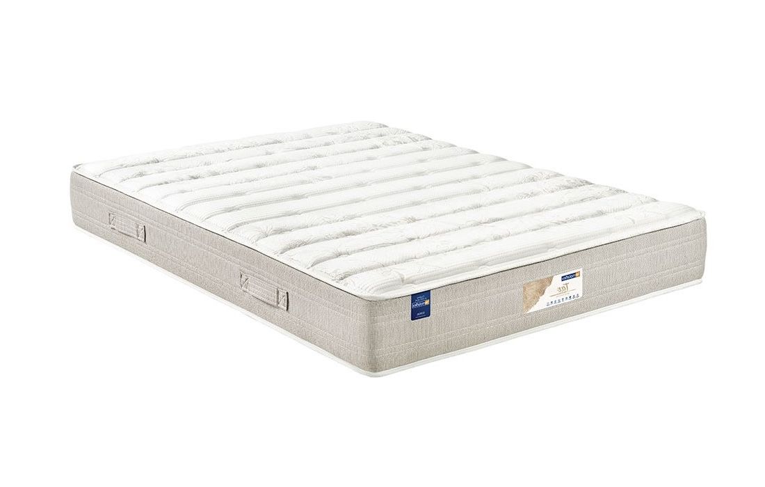 Acolchoado Memosense com viscoelástica e fibras hipoalergénicas. Proporciona uma adaptação perfeita, sensível à temperatura do corpo, que se molda milimetricamente a cada parte do corpo e cedendo unicamente onde se exerce pressão. Hipoalergénico, mantém uma temperatura constante e favorece um alto nível de recuperação do colchão.