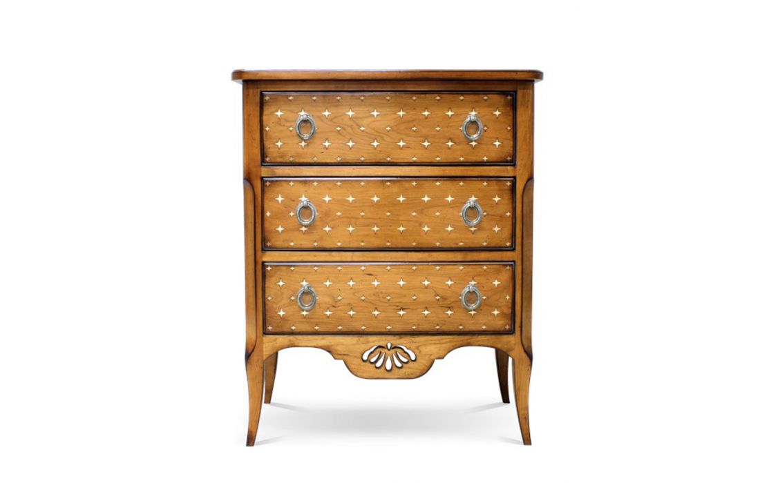 Cómoda com exterior em cerejeira americana, francesa, carvalho, MDF folheado e interior em cerejeira, freixo-tulipeira.