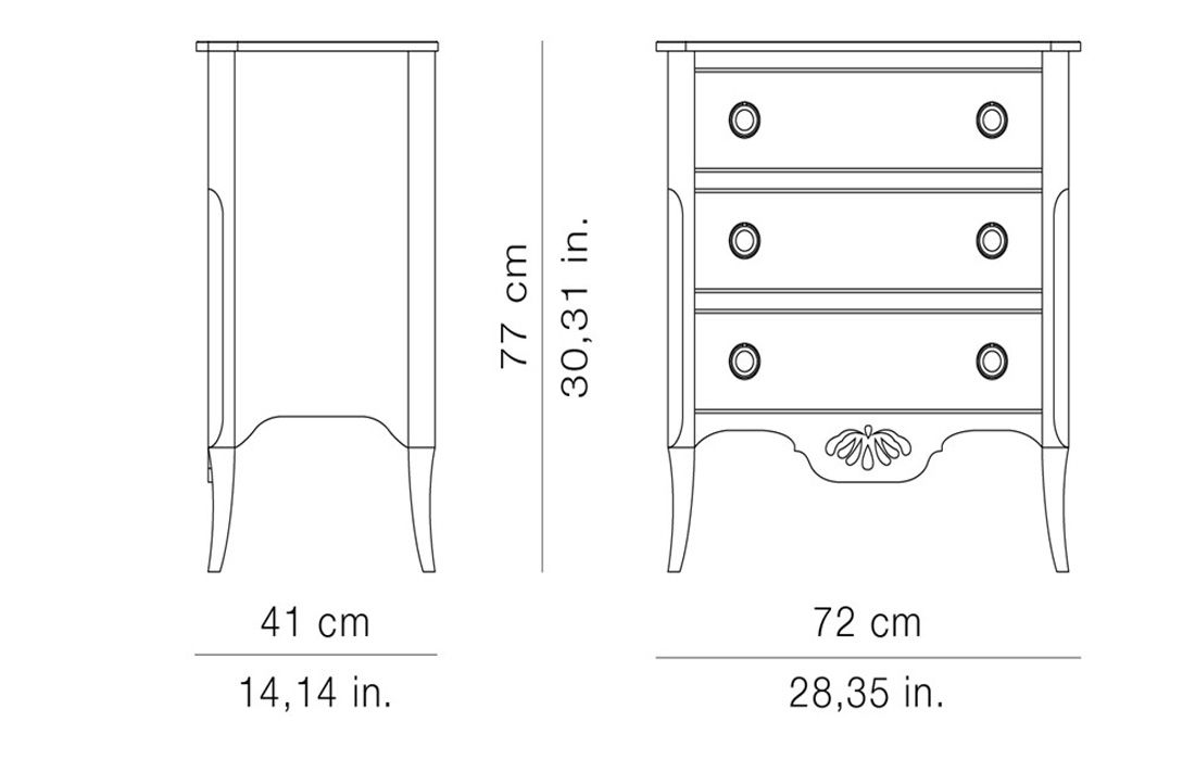 | P -02 | 1 | Cómoda c/ 3 gavetas | C 72 P 41 A 77 | 1.240,00 € | ||||