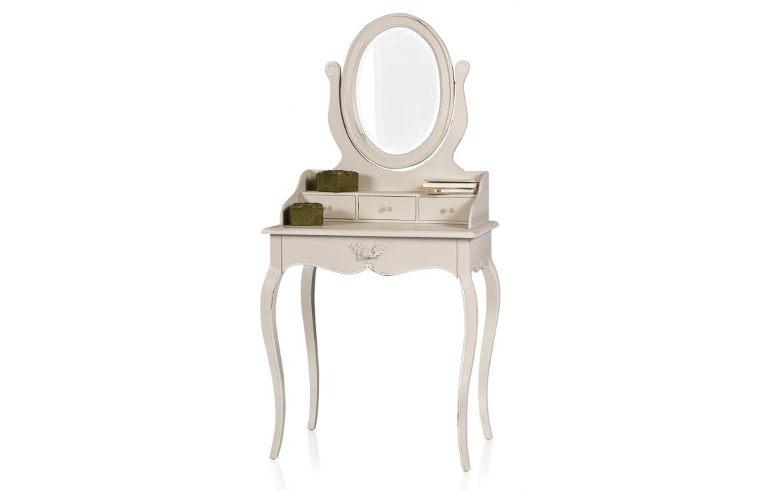 Cómoda clássica com 4 gavetas e 1 espelho, estrutura em madeira.