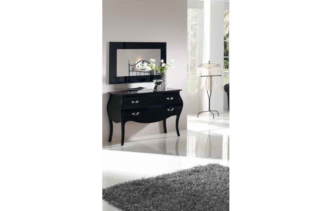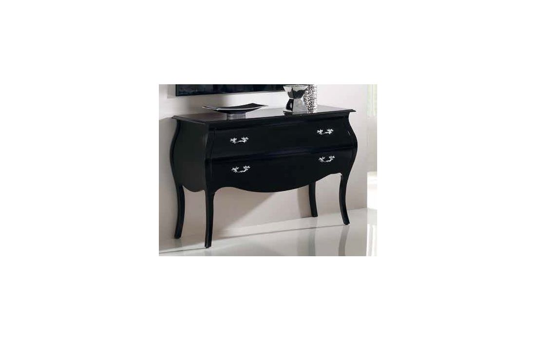 Cómoda com 2 gavetas em brilho branco, preto ou prateado.