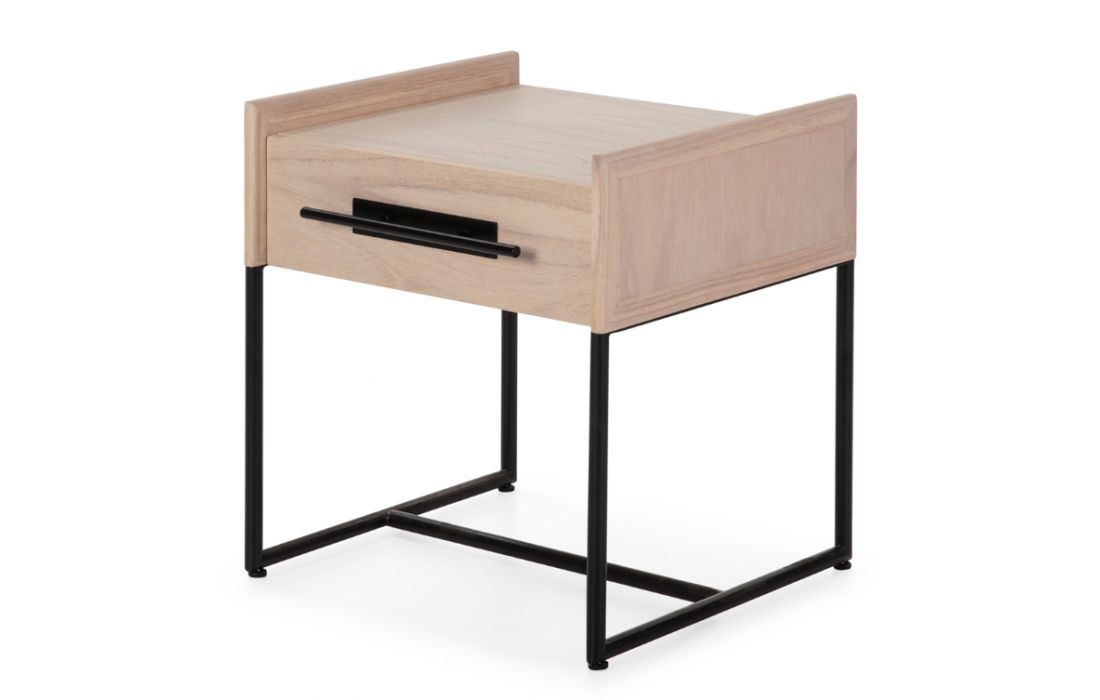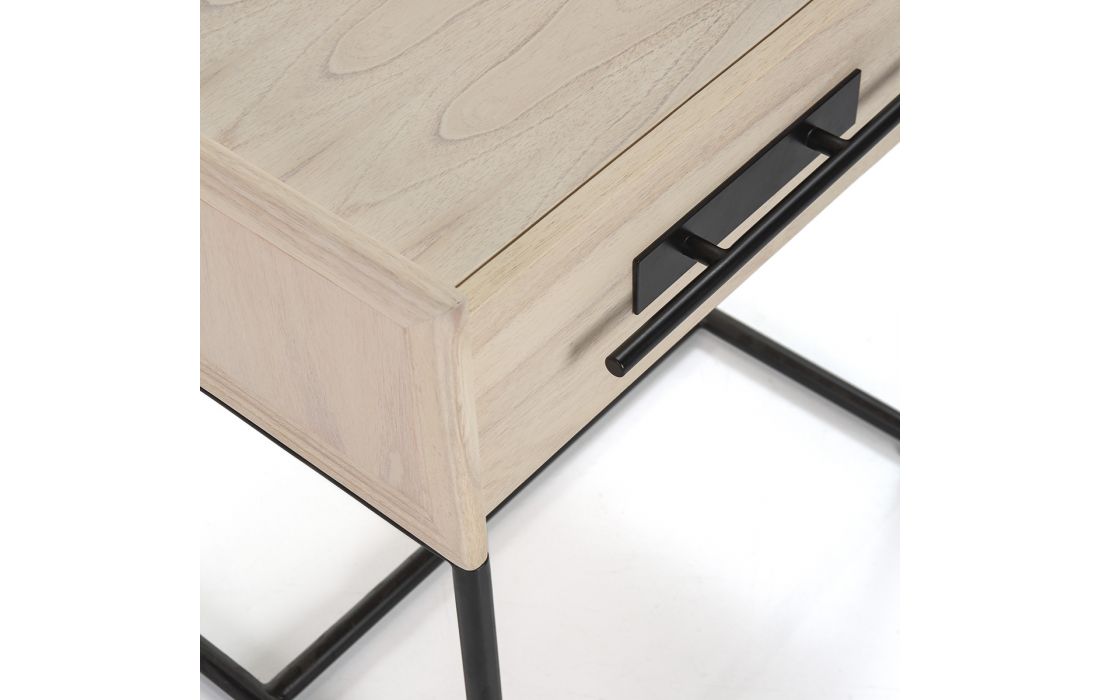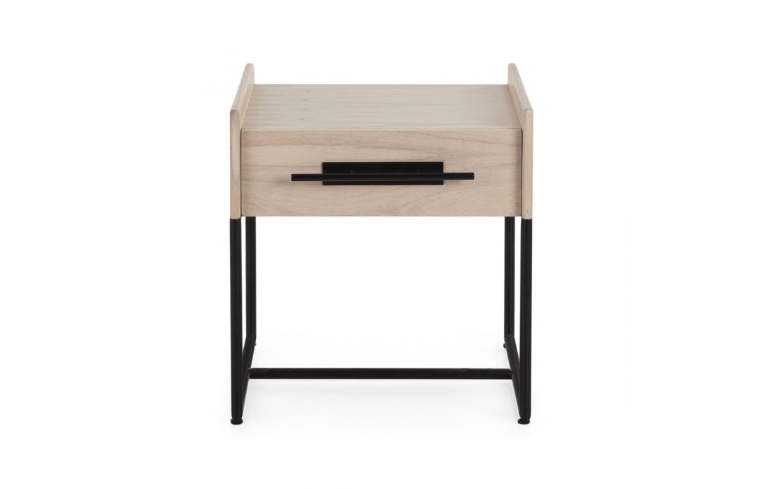 Cómoda com 1 gaveta em madeira natural e com base e puxares em metal preto.