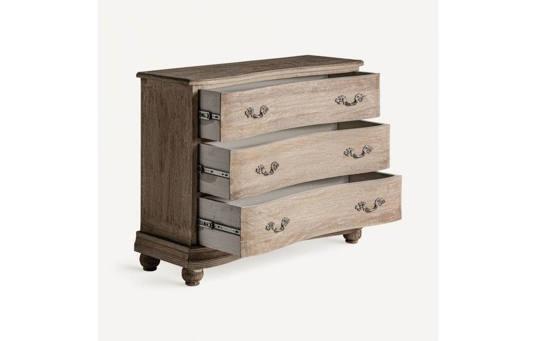 Cómoda com estrutura em madeira e detalhes em ferro.
