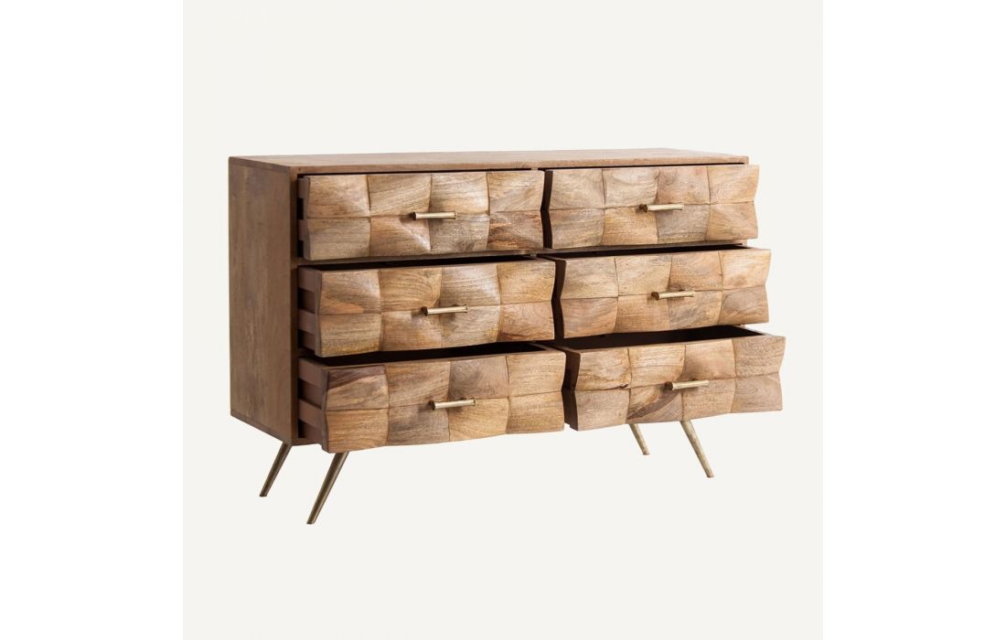 Cómoda com estrutura em ferro e detalhes em madeira.