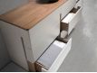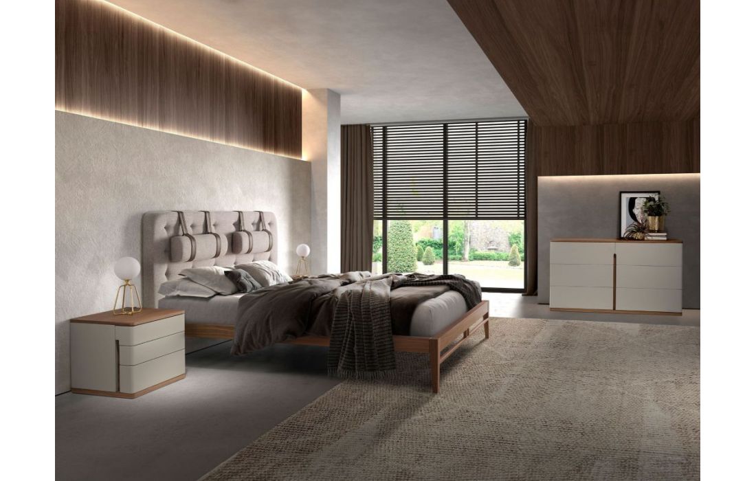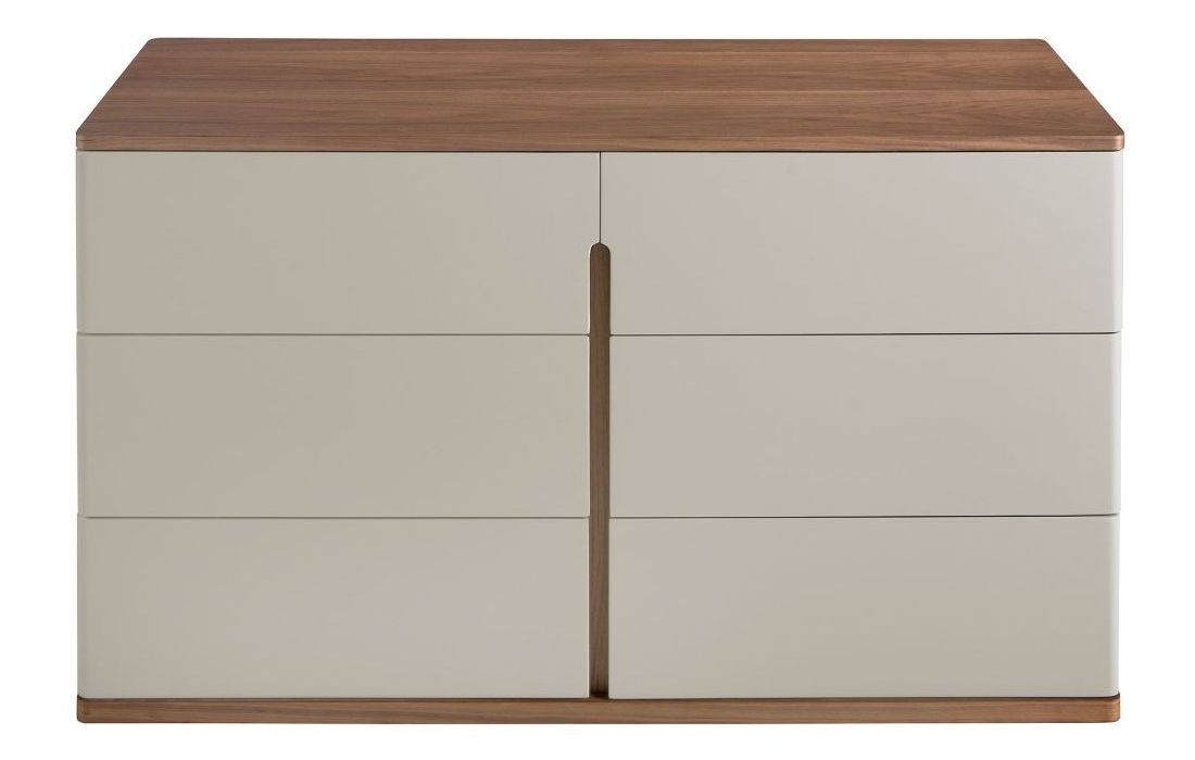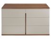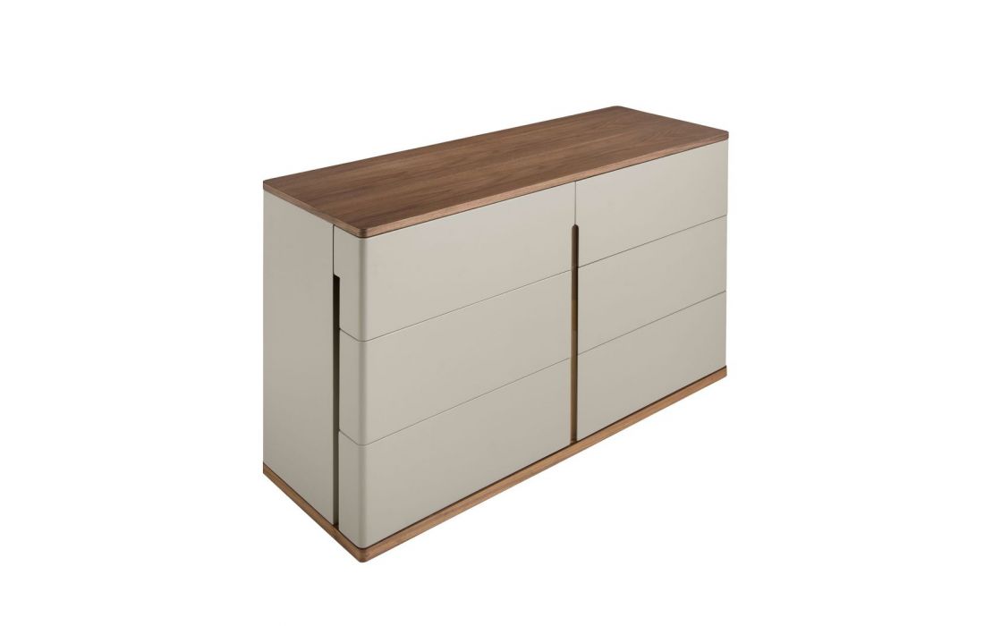 Cómoda de design moderno com estrutura em MDF cinza e base original em MDF na cor nogueira, com tampo em MDF de nogueira natural e 6 gavetasDestinatário :