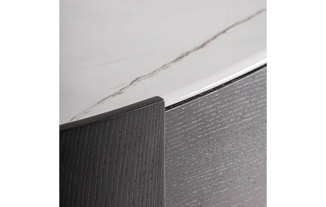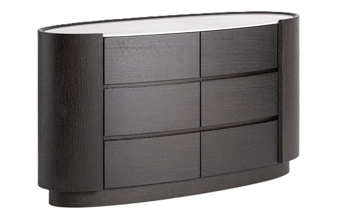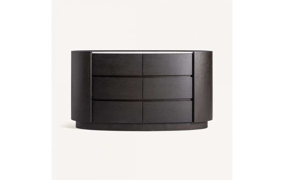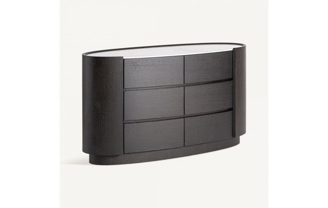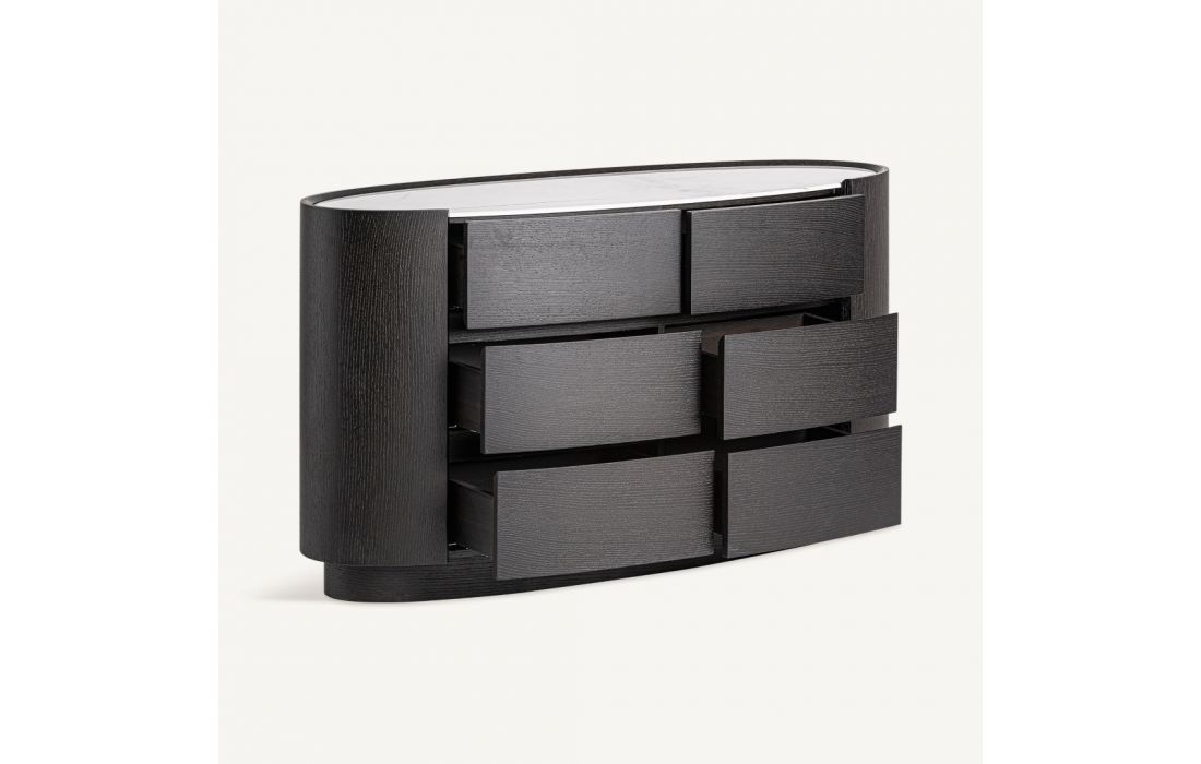 Cómoda fabricada em contraplacado preto e pedra sinterizada branca, destaca-se pelo contraste visual e design contemporâneoDestinatário :