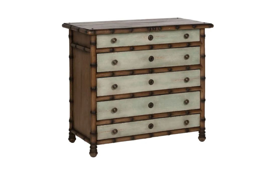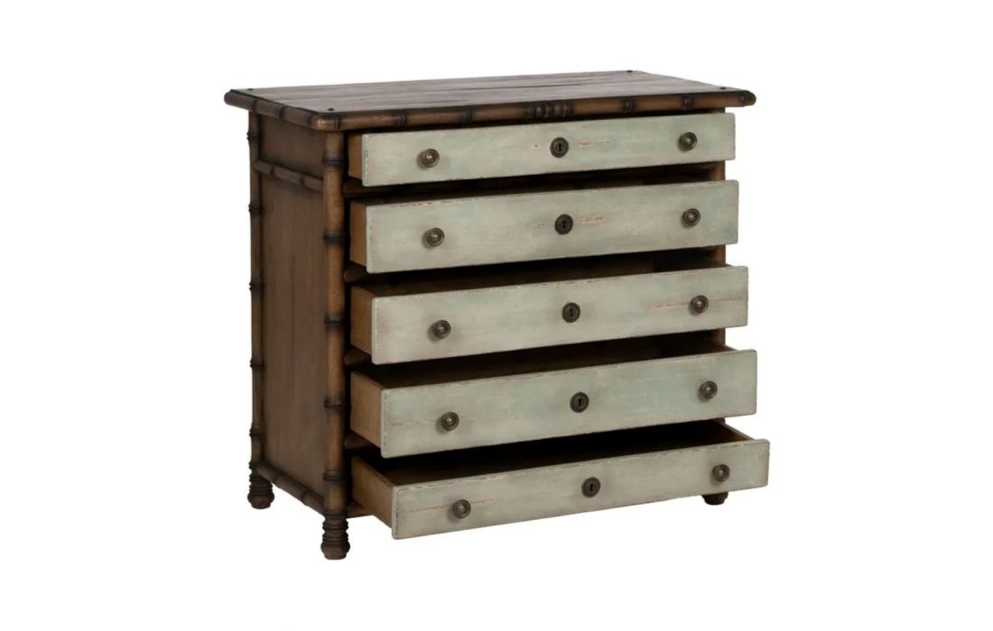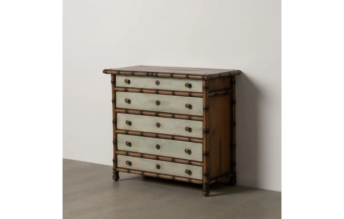 Comoda fabricada em madeira mindi com estilo rústico e acabamento envelhecido, grande espaço de arrumação de 5 gavetasDestinatário :