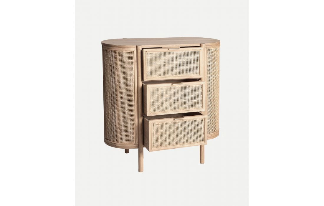 A CÓMODA IKLA em madeira de mango e palhinha, é uma adição elegante e versátil ao seu espaço. Seu design minimalista se adapta a uma variedade de configurações de decoração. Construção de alta qualidade garante durabilidade e resistência.