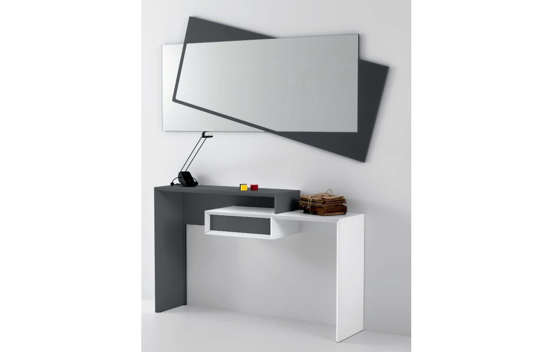 Consola com estrutura em MDF de cor branco e 1 gaveta em cinza ou em MDF de cor cinza e 1 gaveta em bege