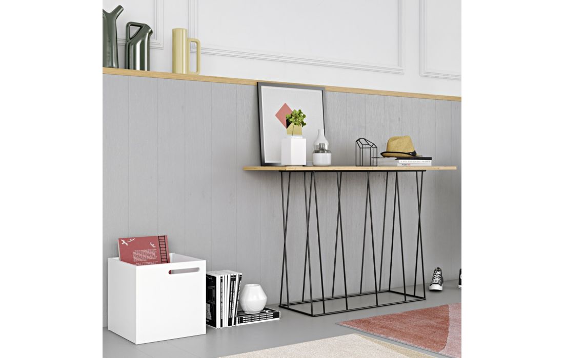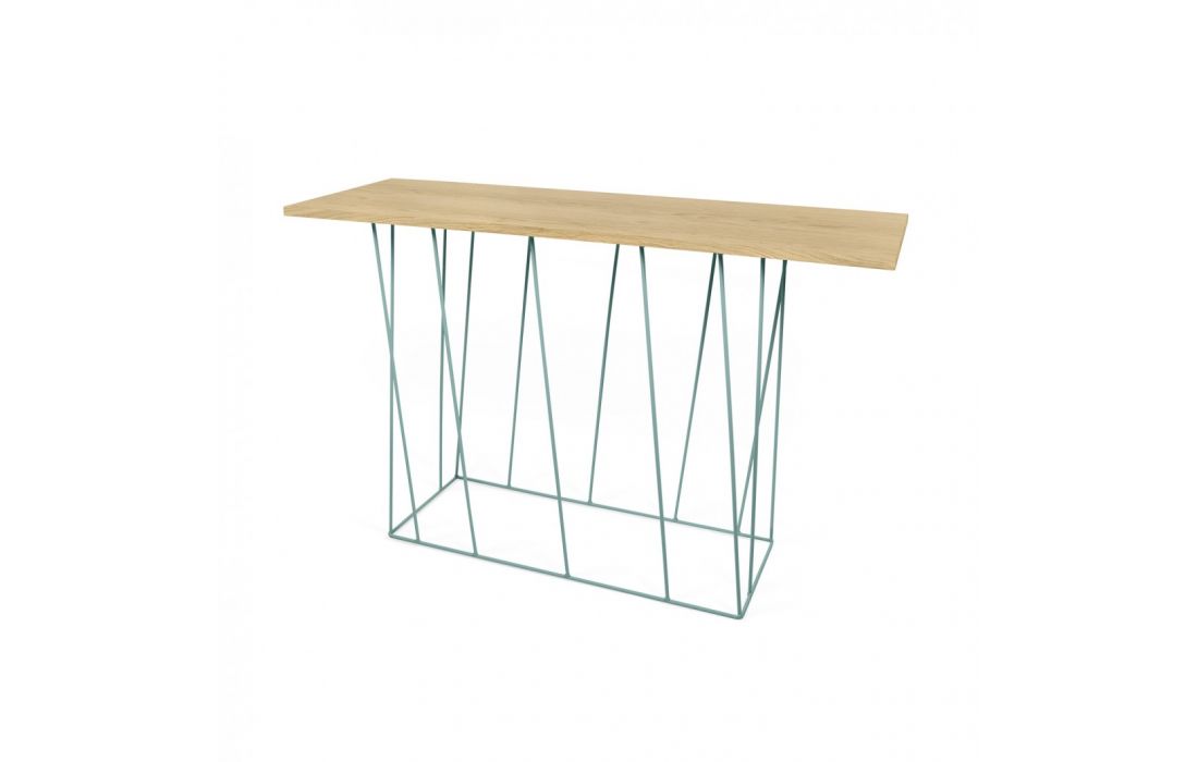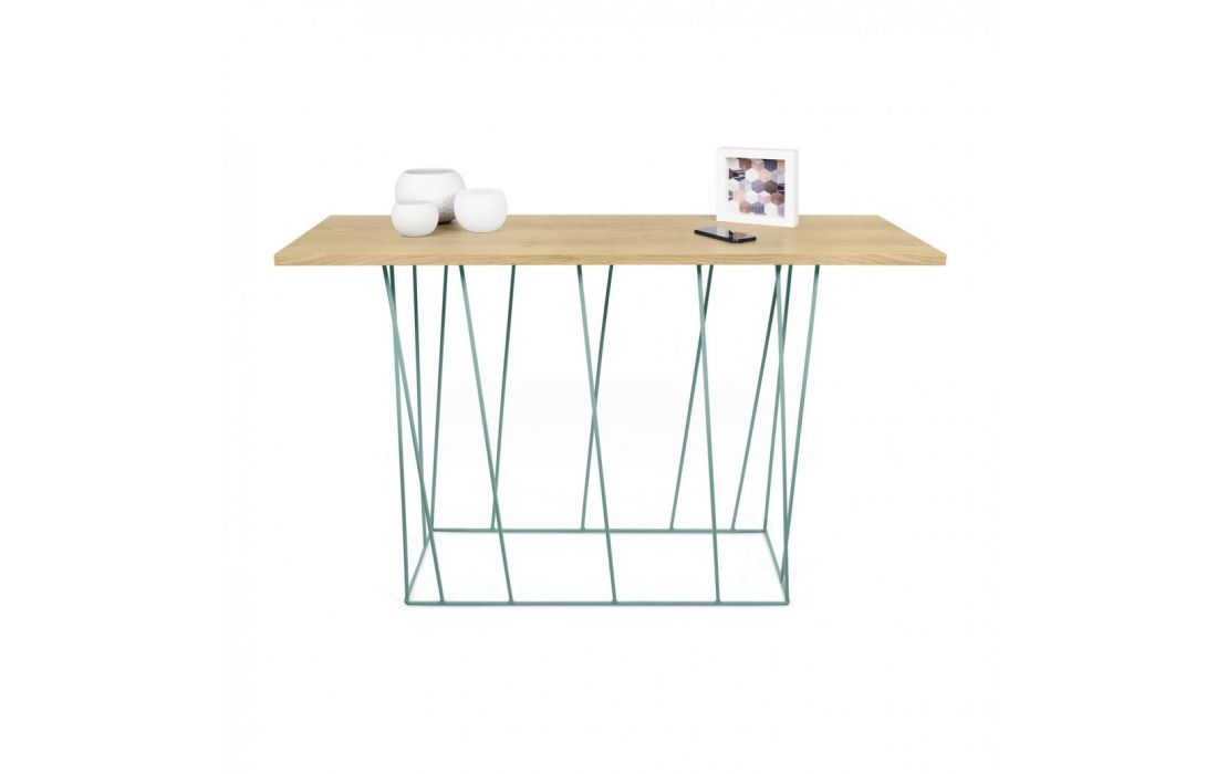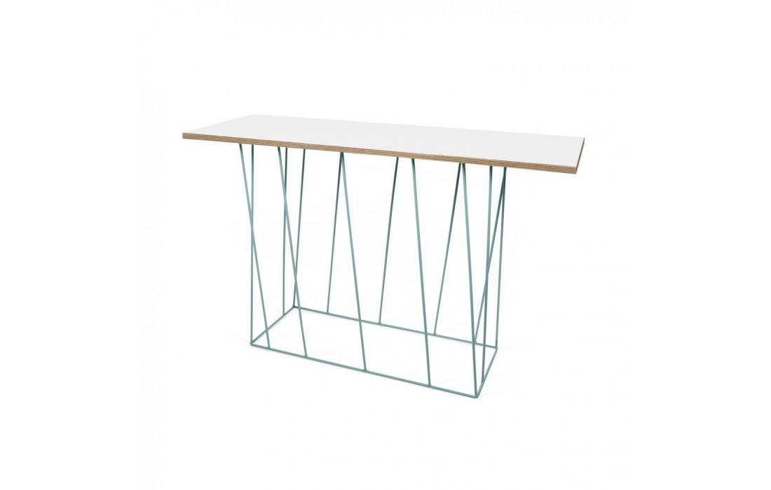 Consola modular com diversas opções de tampo em conjugação com originais pés metálicos em verde água ou preto.