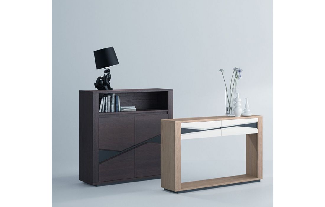 Consola com 2 gavetas, nos vários acabamentos possíveis.