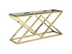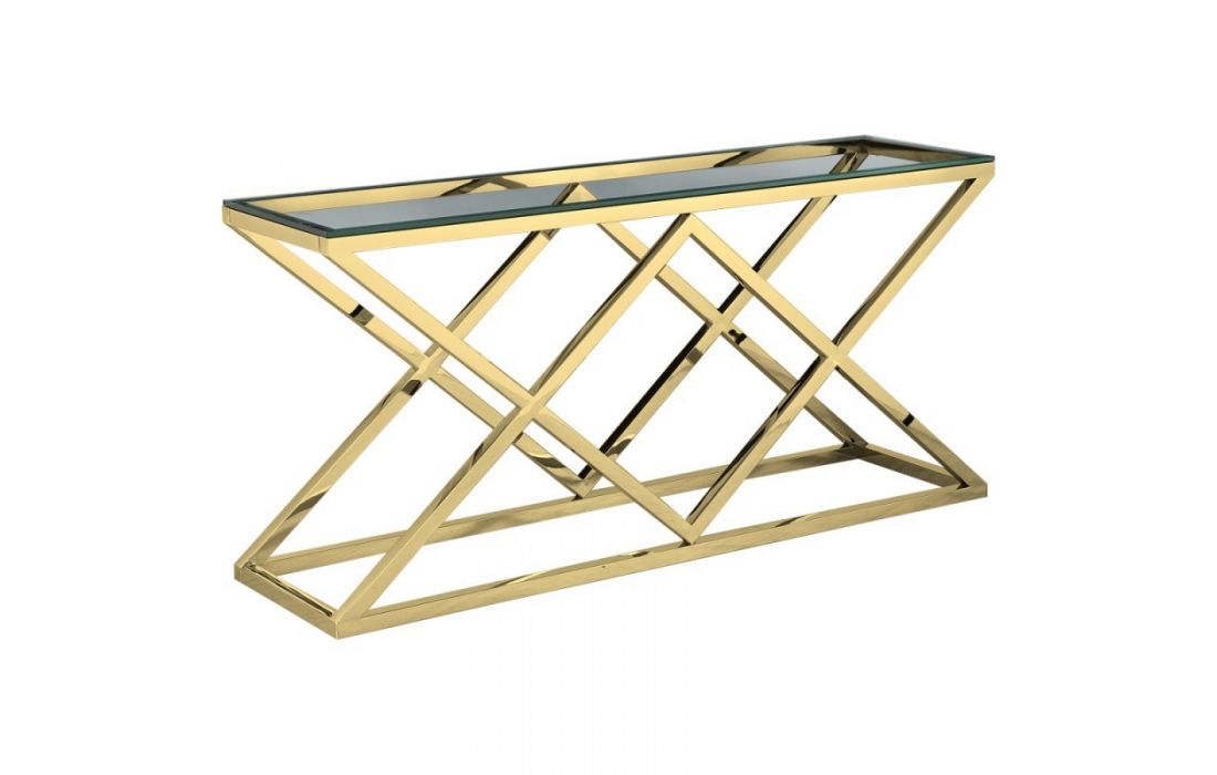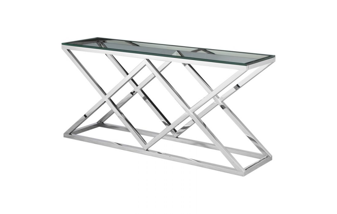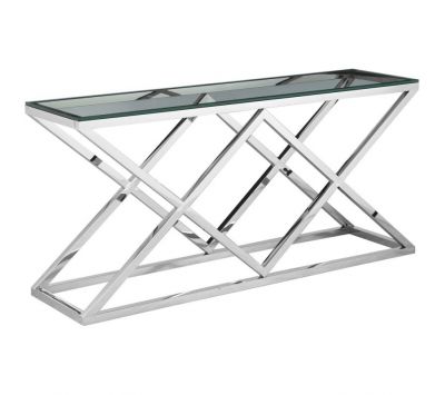 Consola com estrutura de metal e tampo em vidro