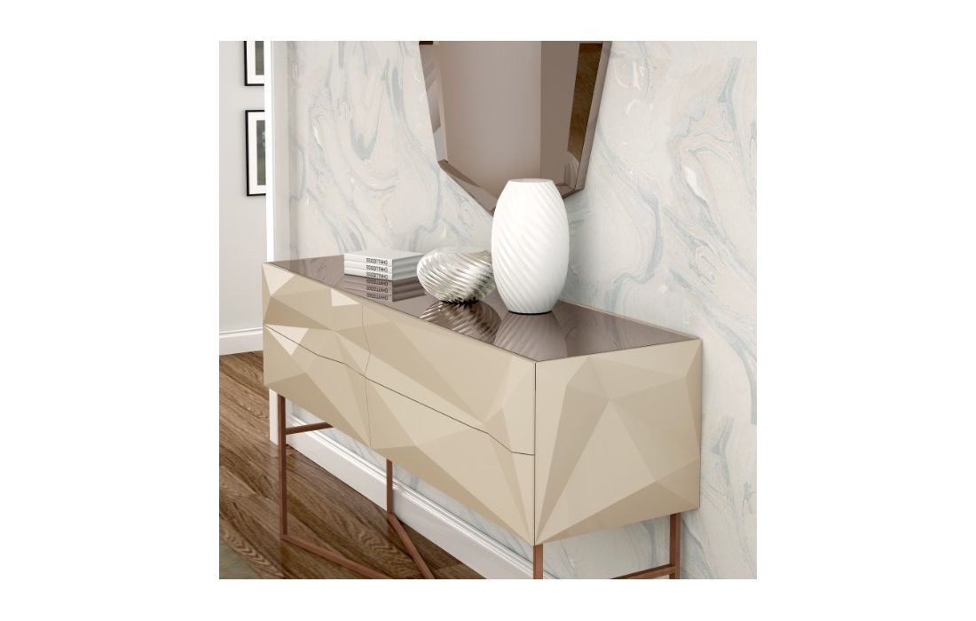 | EH30 | 1 | Consola de 4 gavetas com tampo de espenho e pé metálico | L 147 P 44 A 80 | 1.612,00 € | ||||