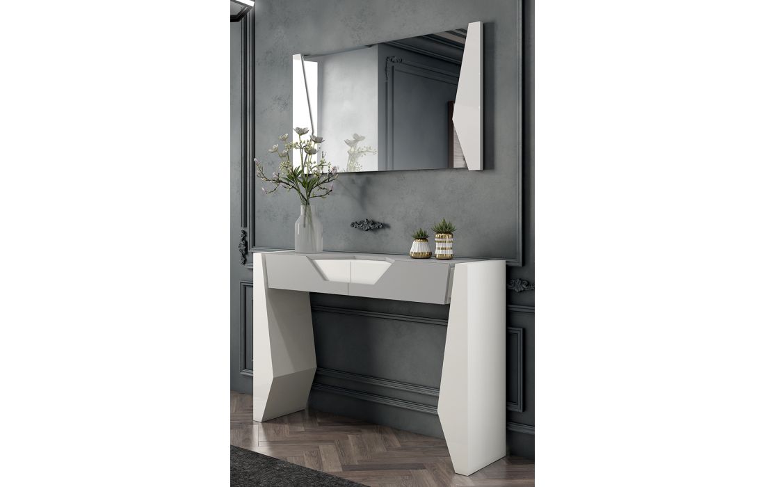 Acabamento igual à imagem: Lacado branco mate com pormenores em lacado cinza mate
