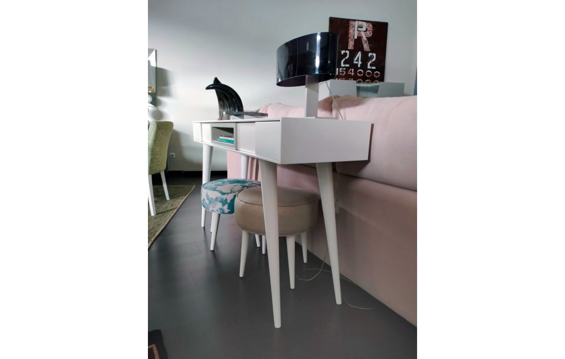 Acabamento igual à imagem: Lacado mate branco com pormenores em lacado mate cinza