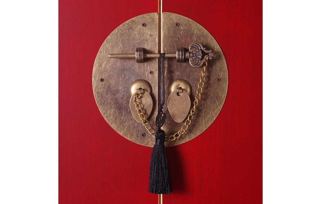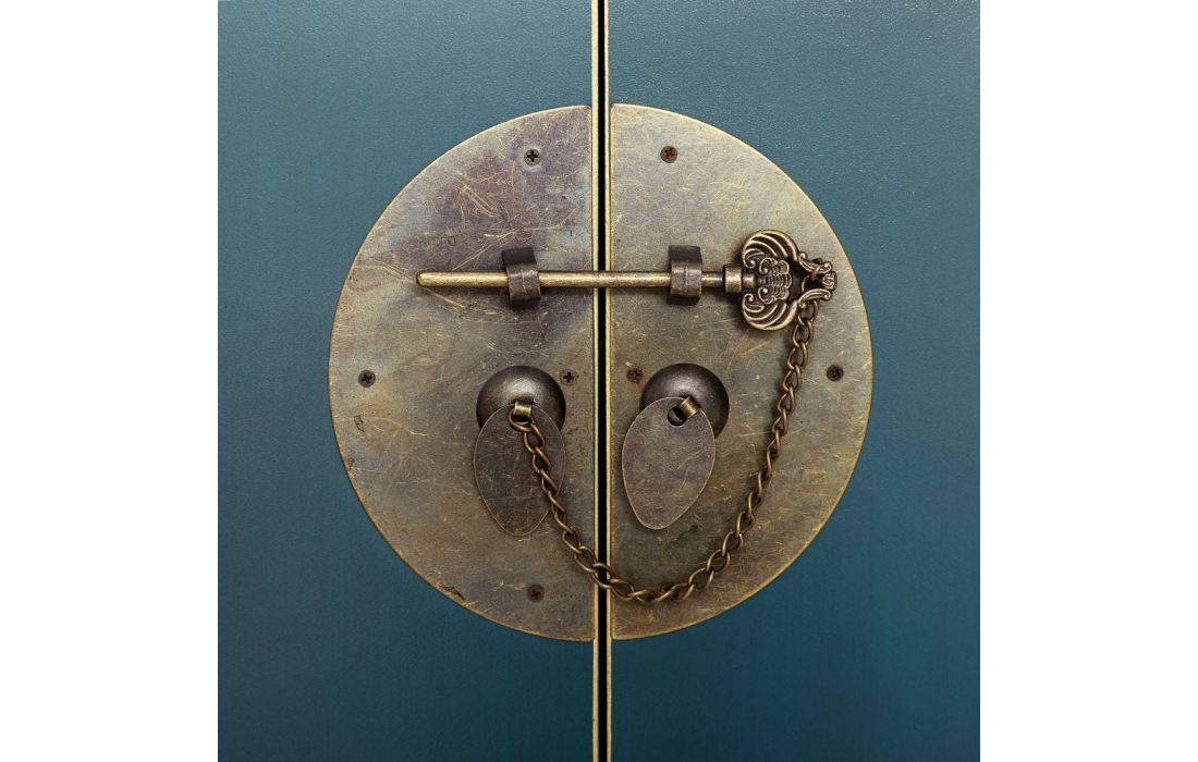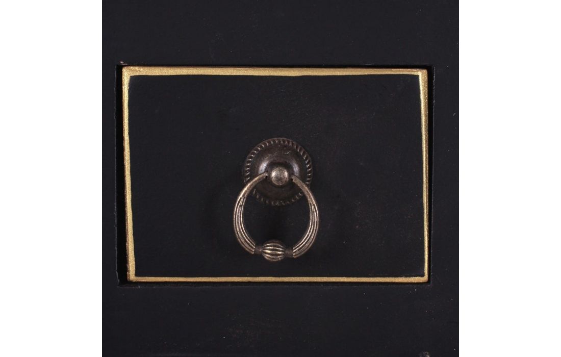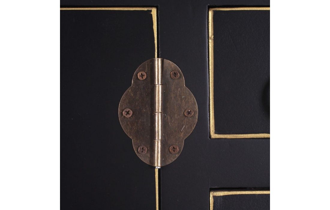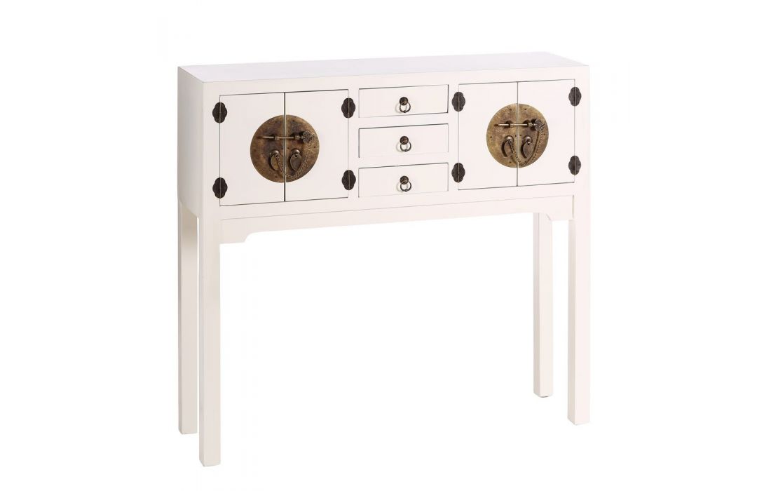 Consola em MDF c/ 4 portas e 3 gavetas e puxadores em metal dourado disponível em 4 cores, preto, branco, vermelho e azul.
