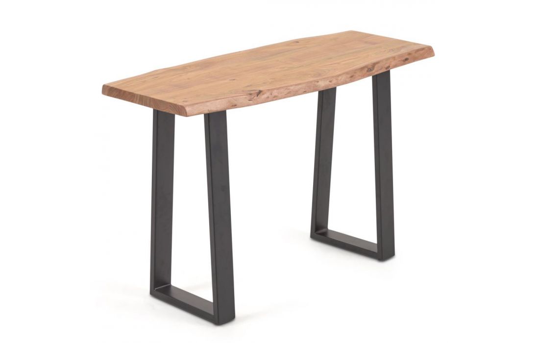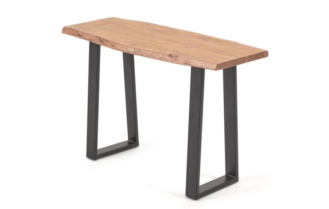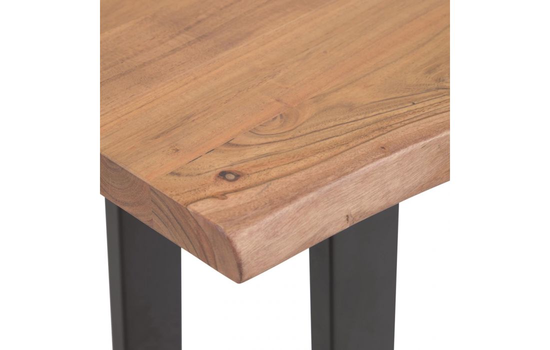 Consola com tampo de madeira maciça acacia e base em aço