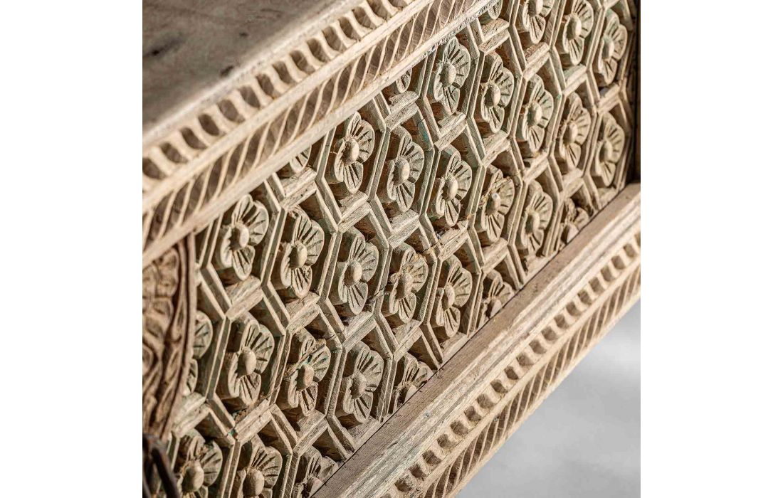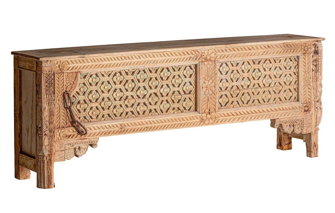 Consola de estilo etnico em madeira de teka cor natural envelhecido