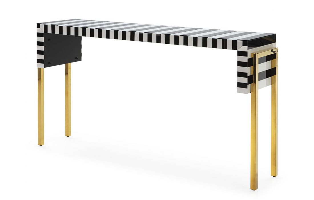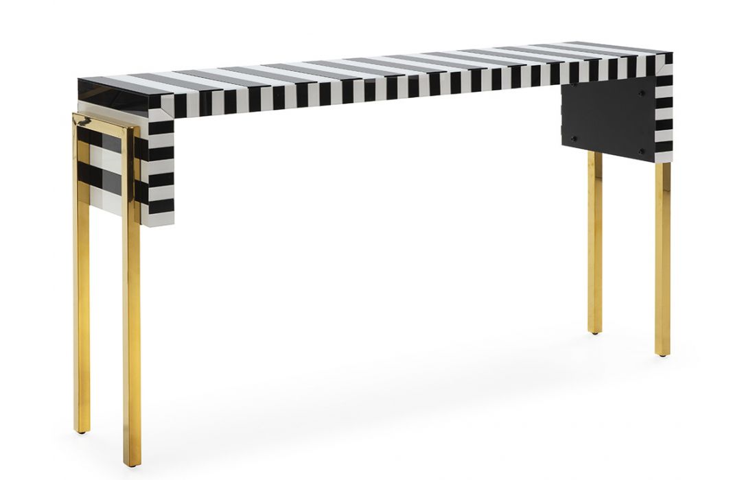 Consola em aço e vidro cor branco/preto/dourado