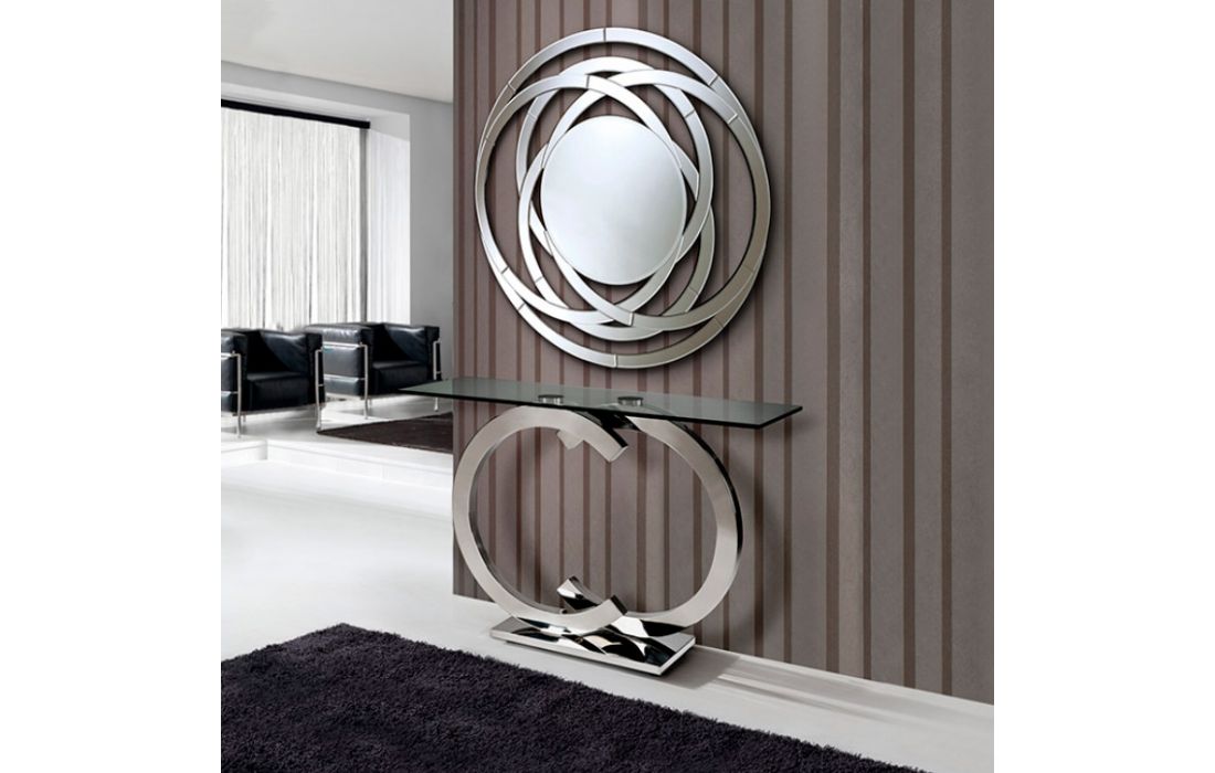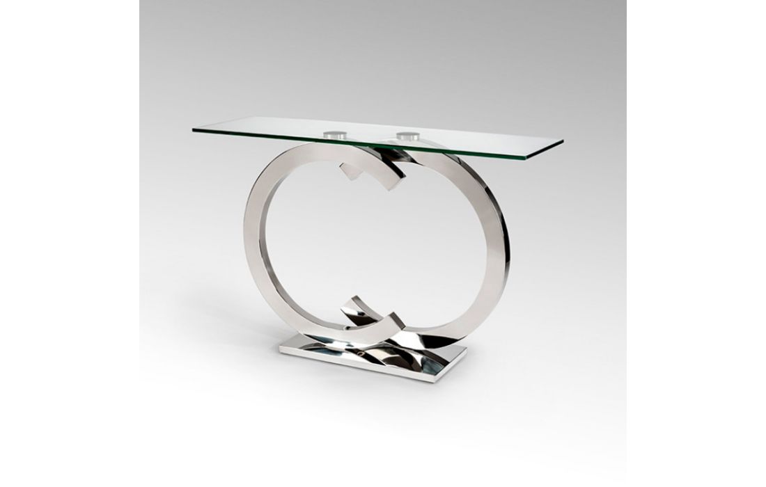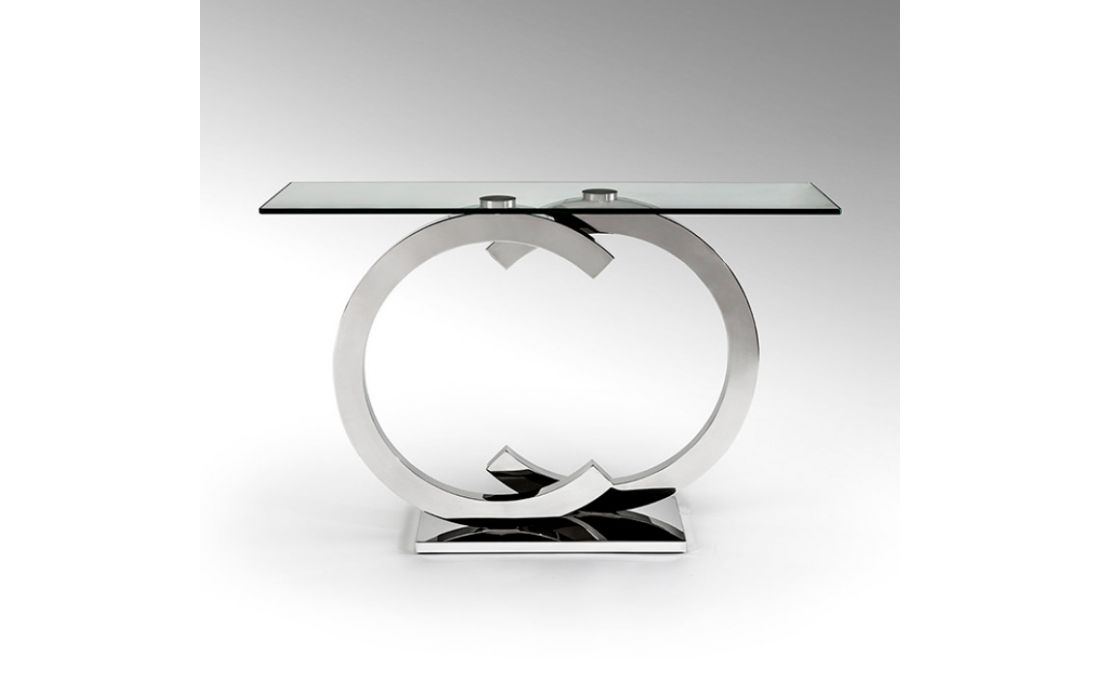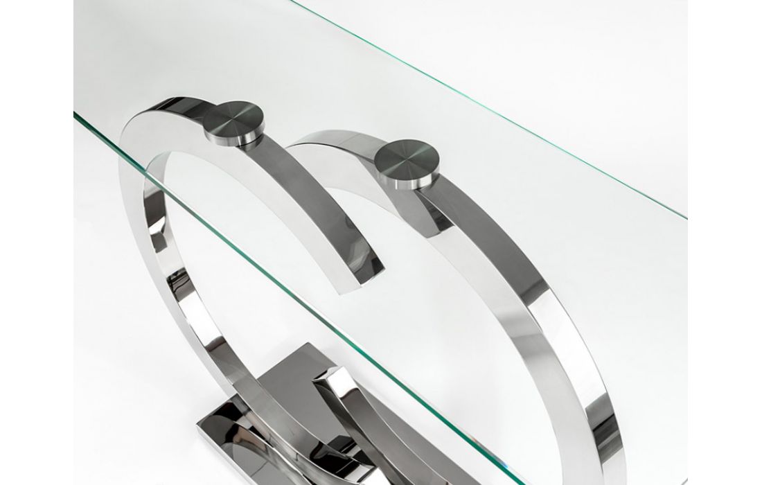 Consola em aço inoxidável e tampo de vidro 12 mm de grossura com canto polido.