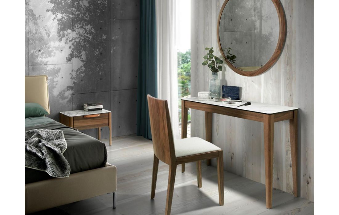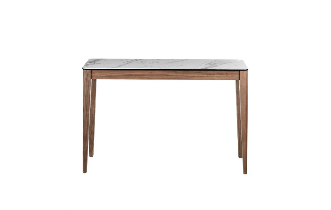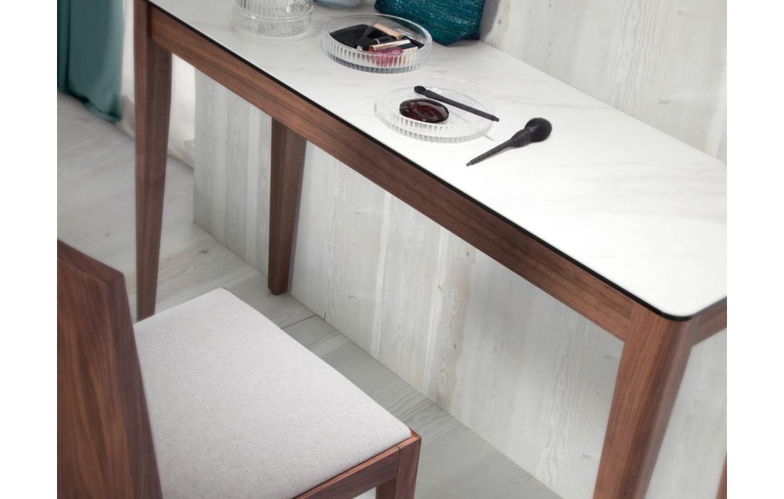 Consola com estrutura em madeira folheada a nogueira e tampo em porcelanaDestinatário :