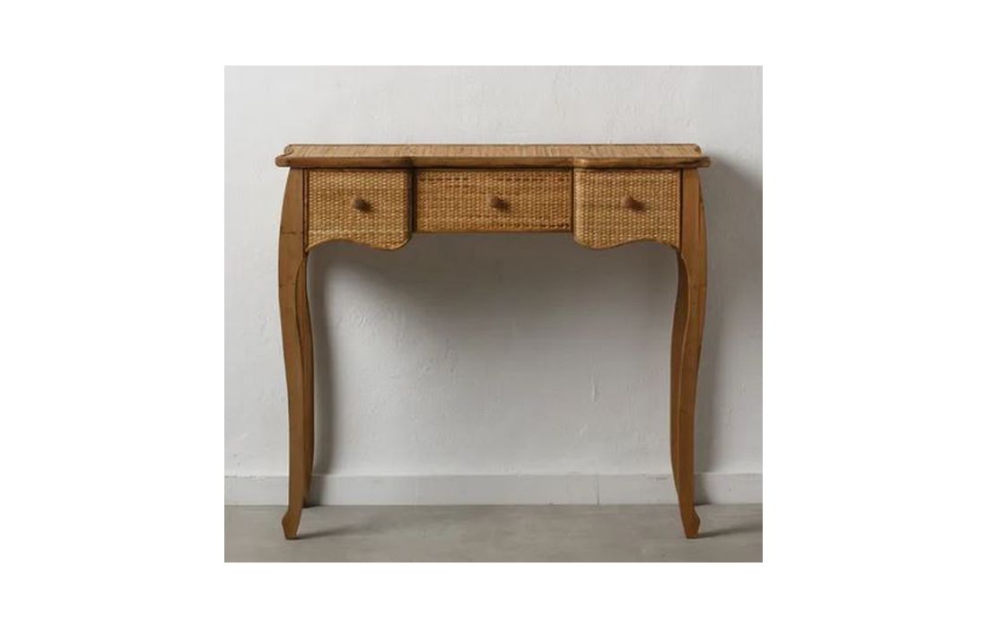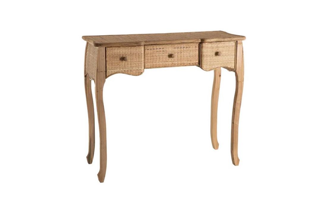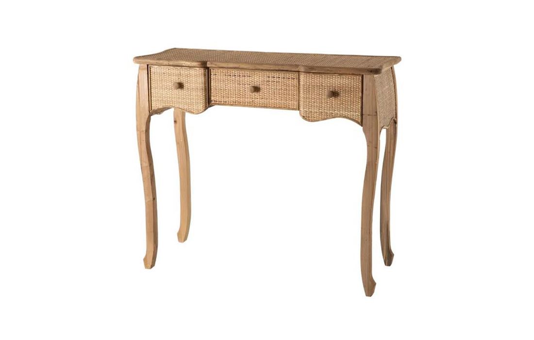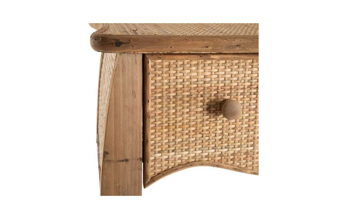 Consola de 3 gavetas feita em madeira de abeto, MDF e ratan cor natrural