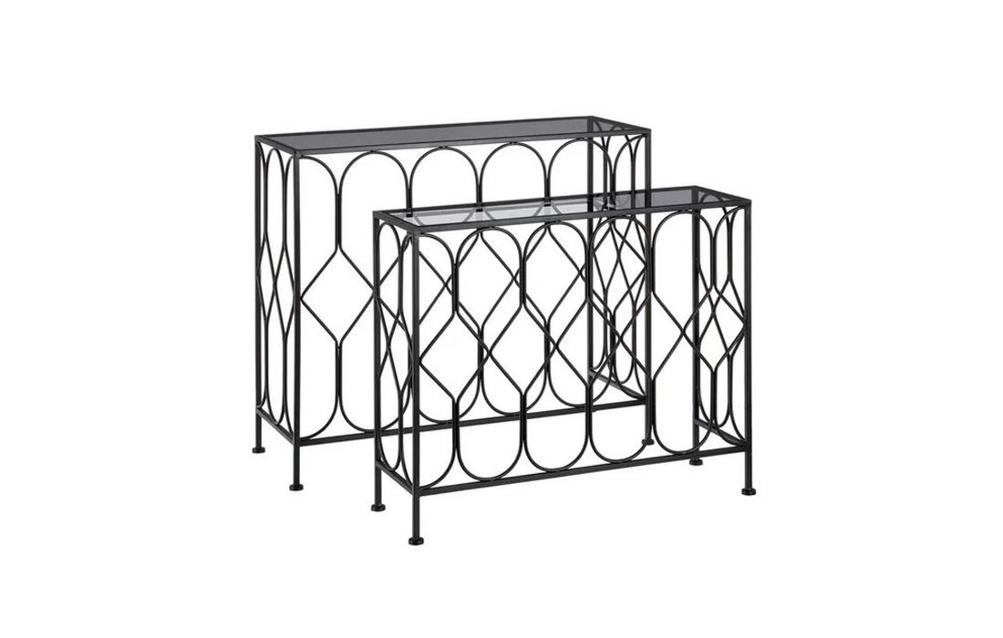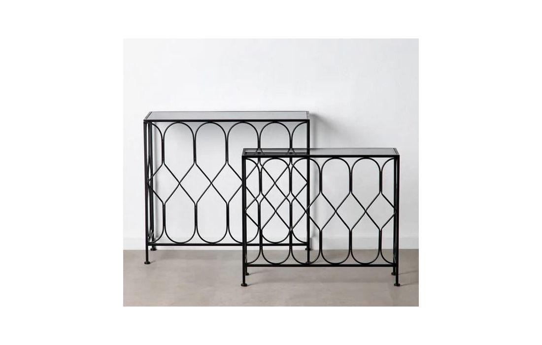 Conjunto 2 consolas com estrutura em metal preto e tampos em vidro
