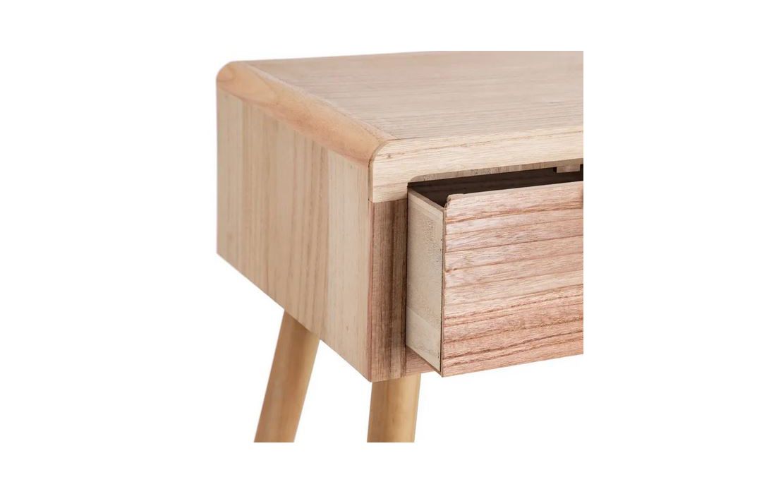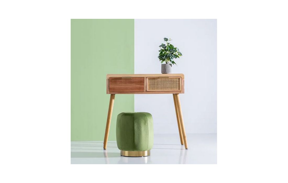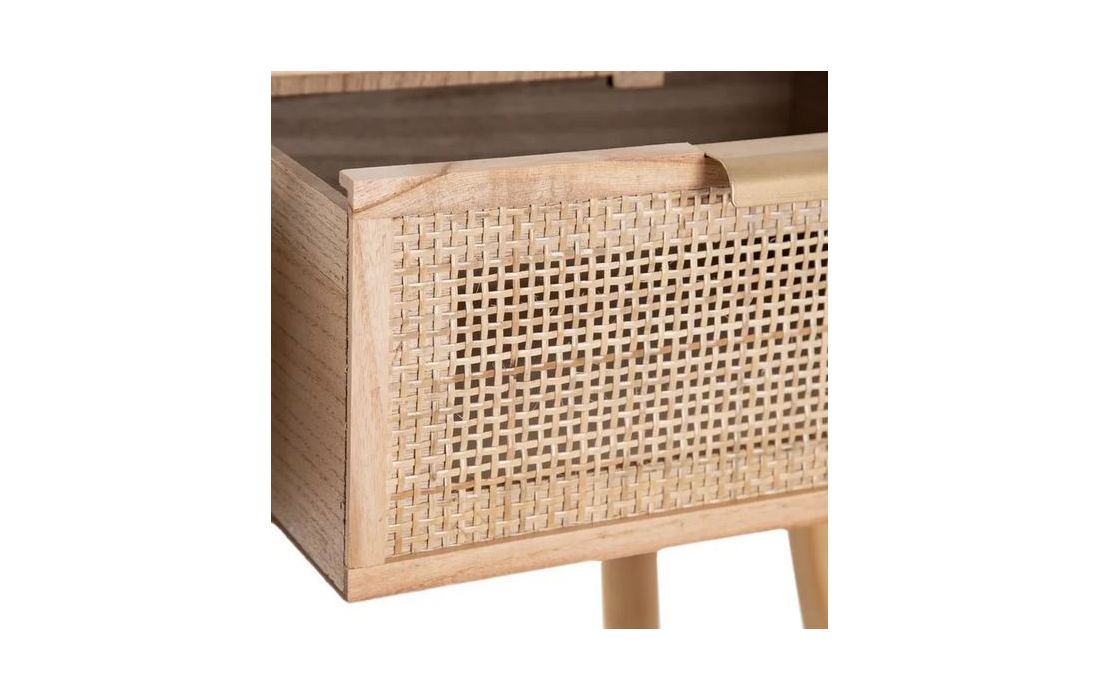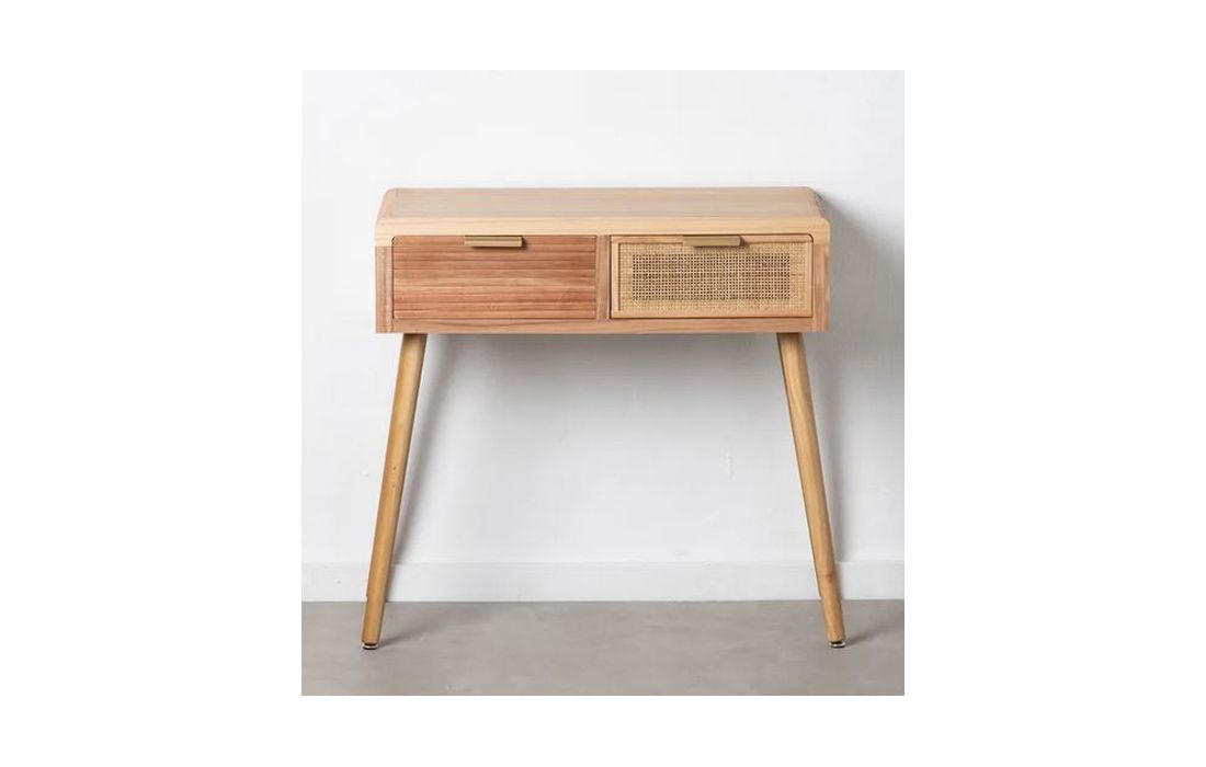 Consola de 2 gavetas em madeira de paulownia e ratan cor natural